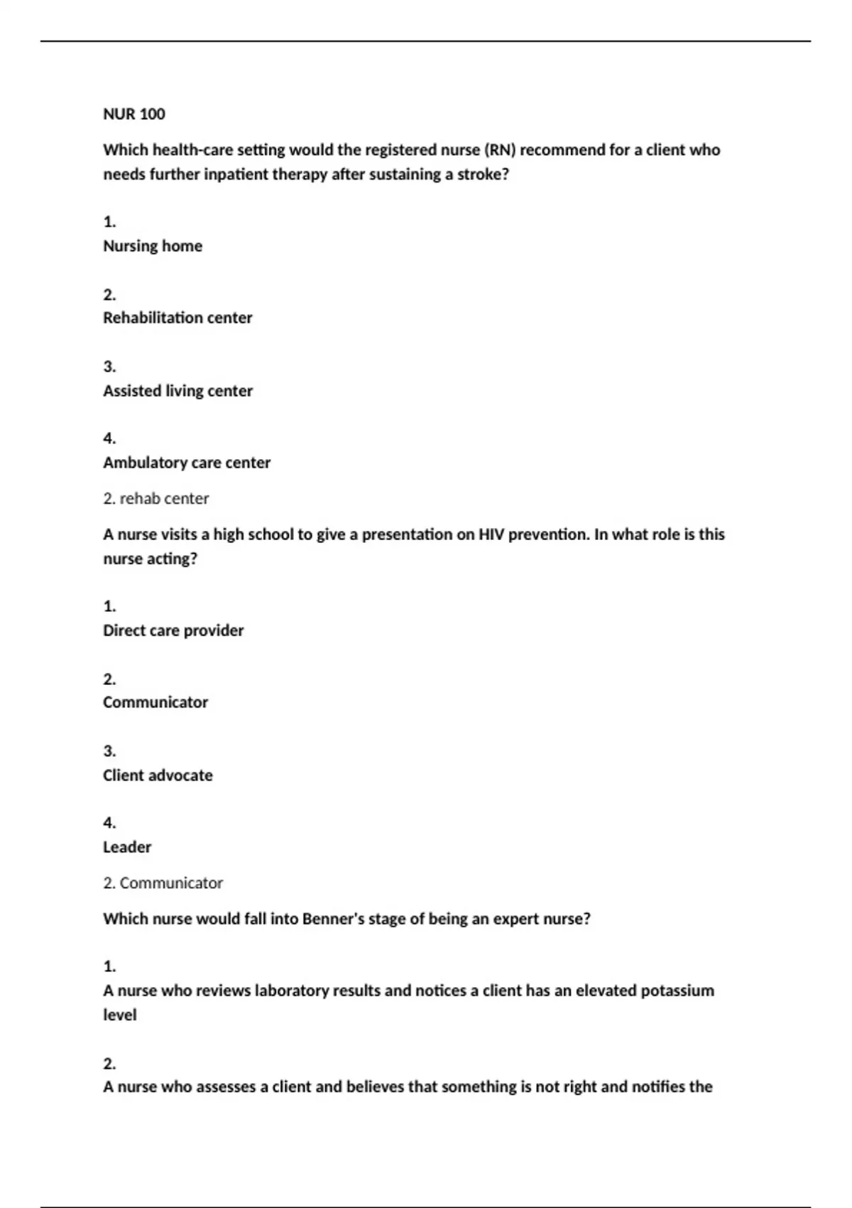 . A registered nurse (RN) is interviewing for a new staff position at a hospital and asks