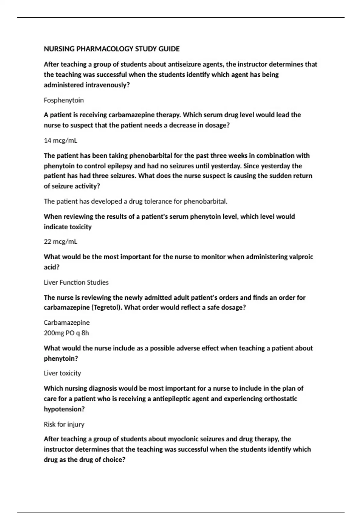 After teaching a group of students about antiseizure agents, the instructor determines that
