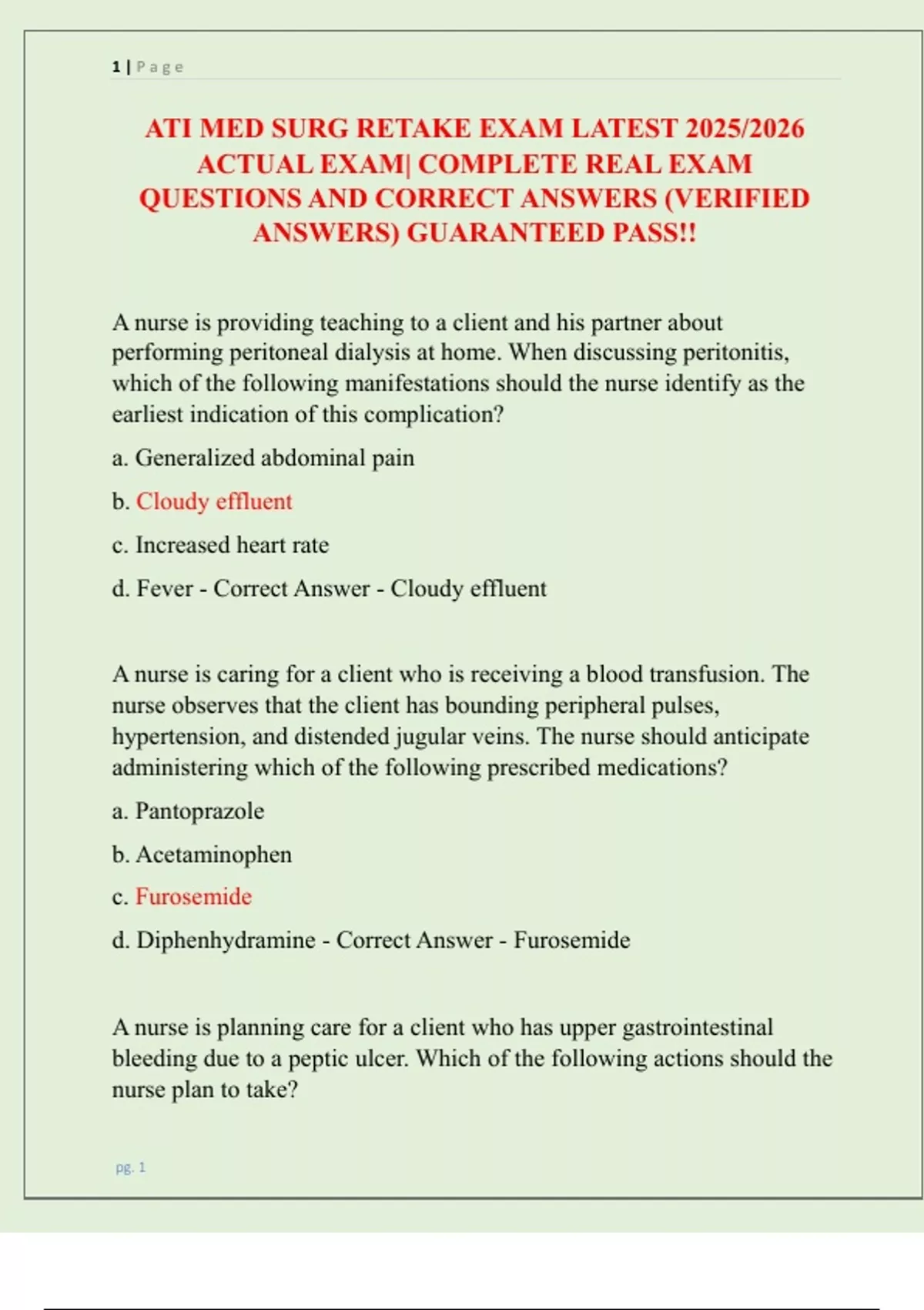 ATI MED SURG RETAKE EXAM LATEST 2025/2026
