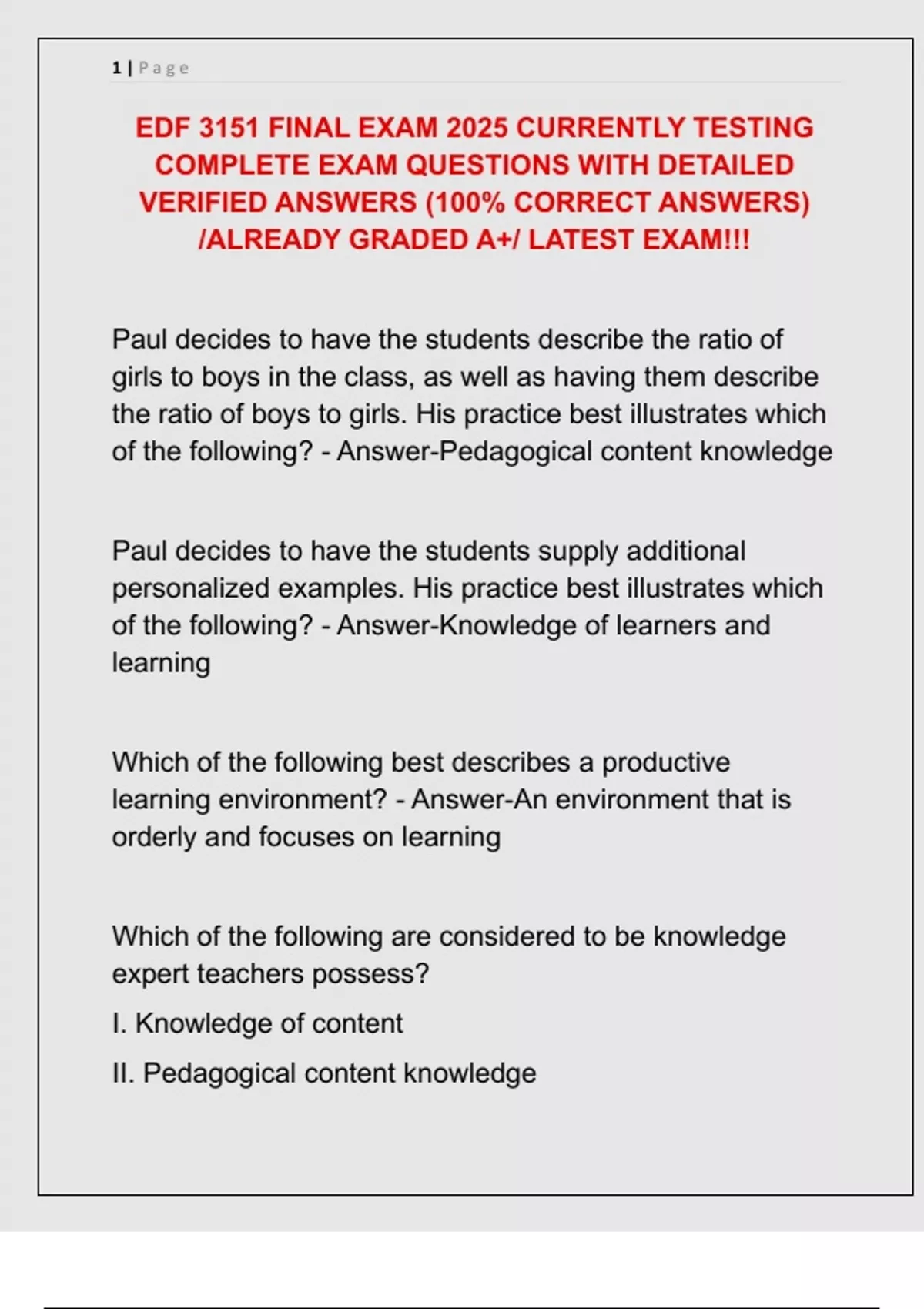 EDF 3151 FINAL EXAM 2025 CURRENTLY TESTING