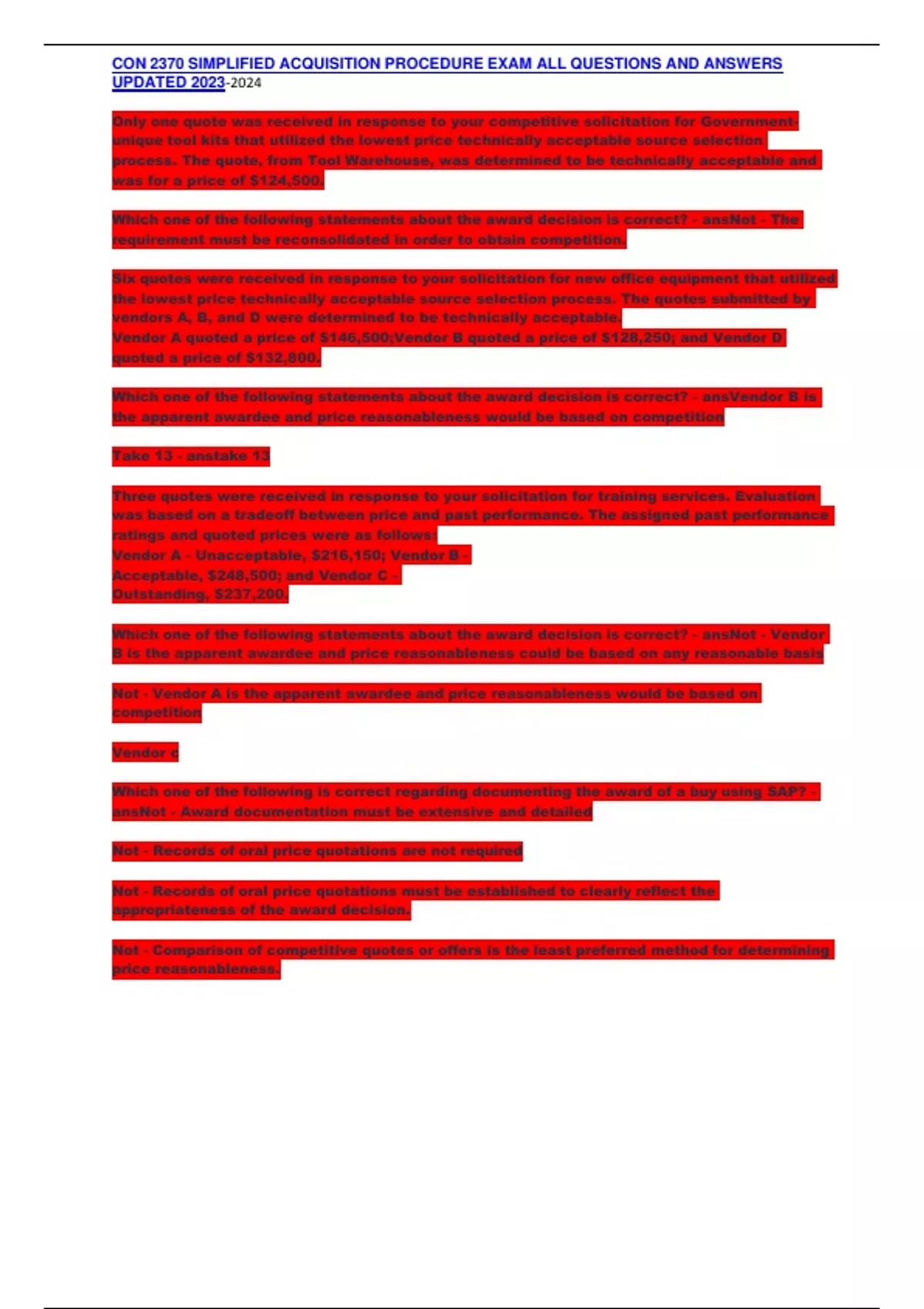 CON 2370 SIMPLIFIED ACQUISITION PROCEDURE EXAM ALL QUESTIONS AND ANSWERS