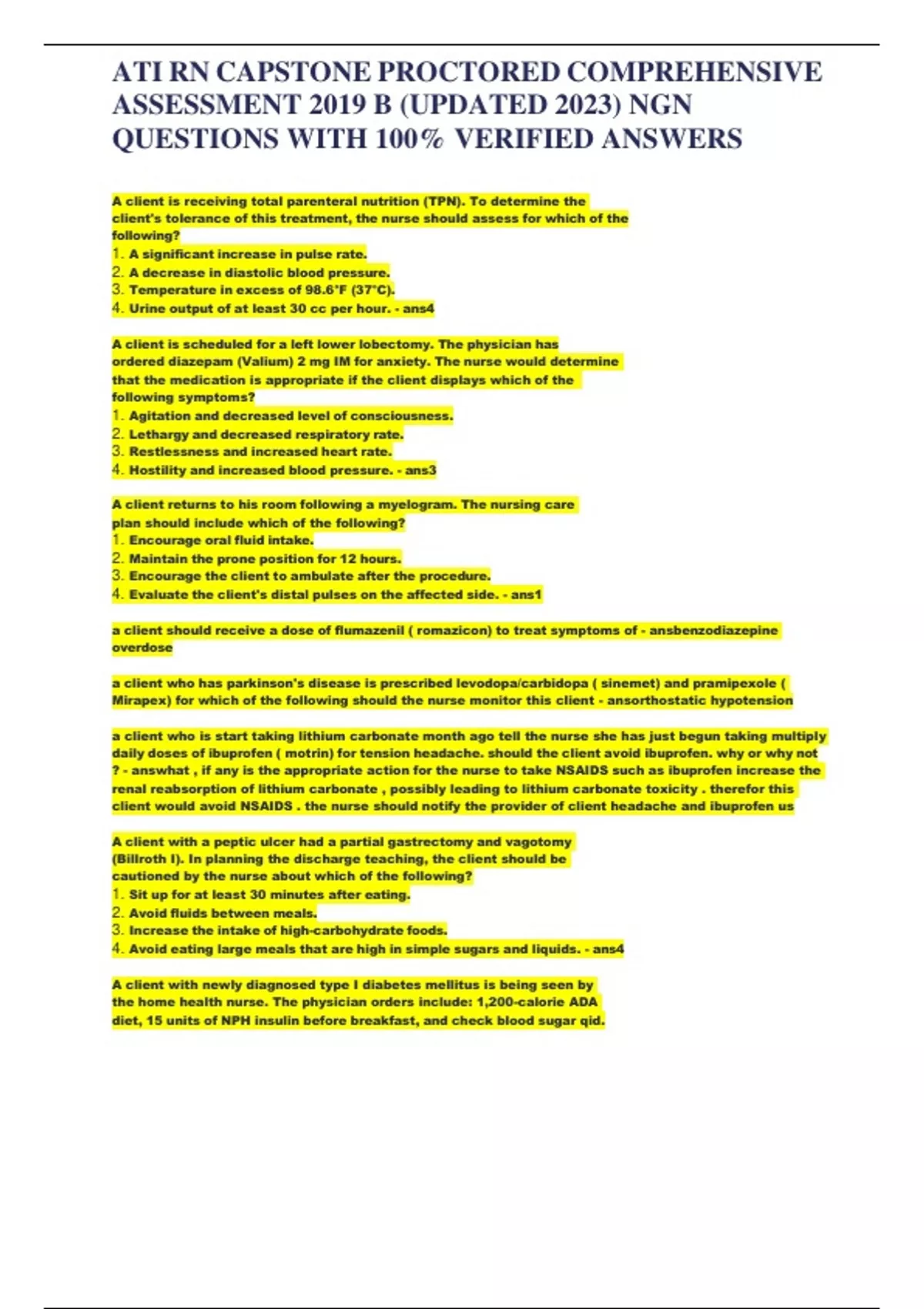 ATI RN CAPSTONE PROCTORED COMPREHENSIVE ASSESSMENT 2019 B (UPDATED 2023) NGN QUESTIONS WITH 100 VERIFIED ANSWERS.pdf 1. Document information