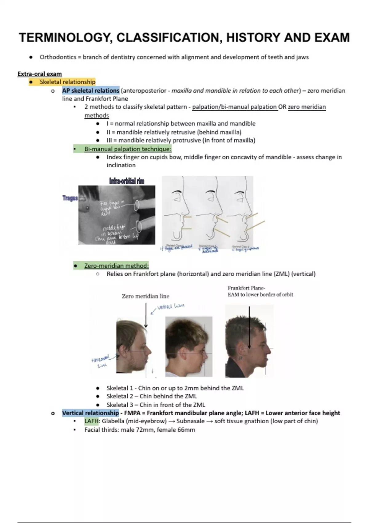 o Vertical relationship - FMPA = Frankfort mandibular plane angle; LAFH = Lower anterior face height