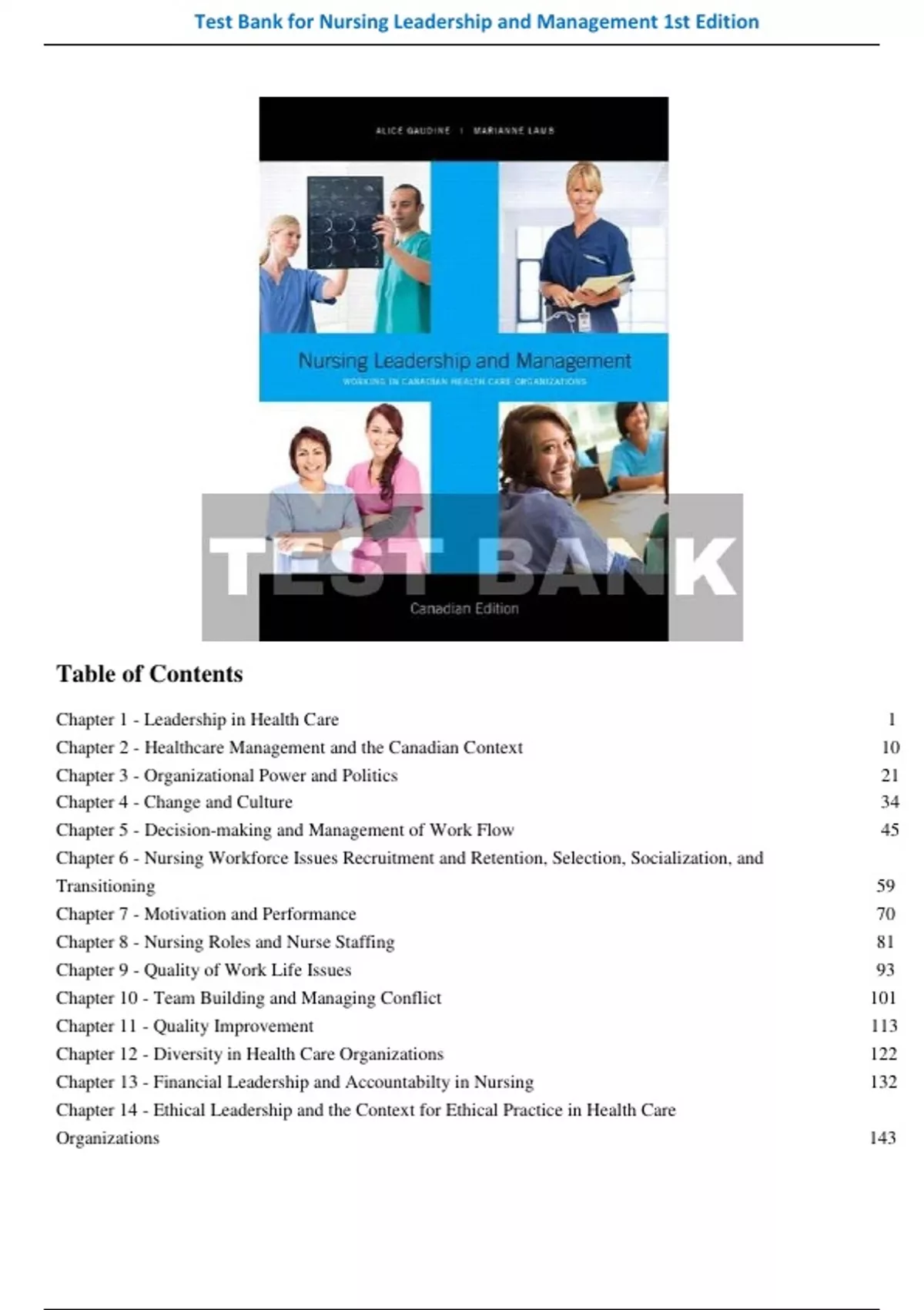, Test Bank for Nursing Leadership and Management 1st Edition