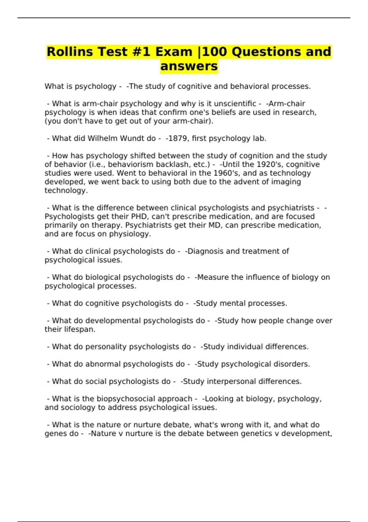 Rollins Test #1 Exam |100 Questions and