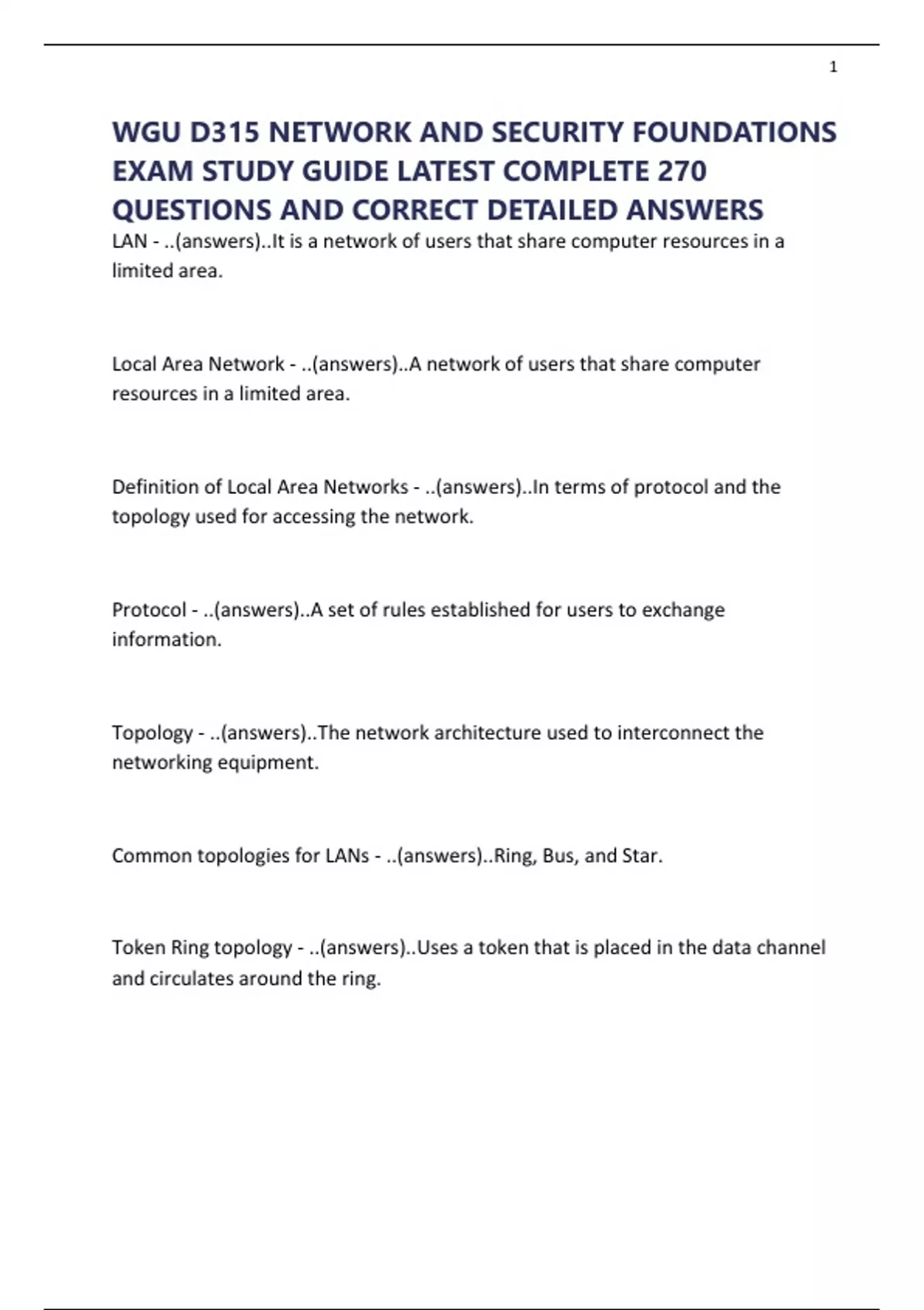 Definition of Local Area Networks - ..(answers)..In terms of protocol and the
