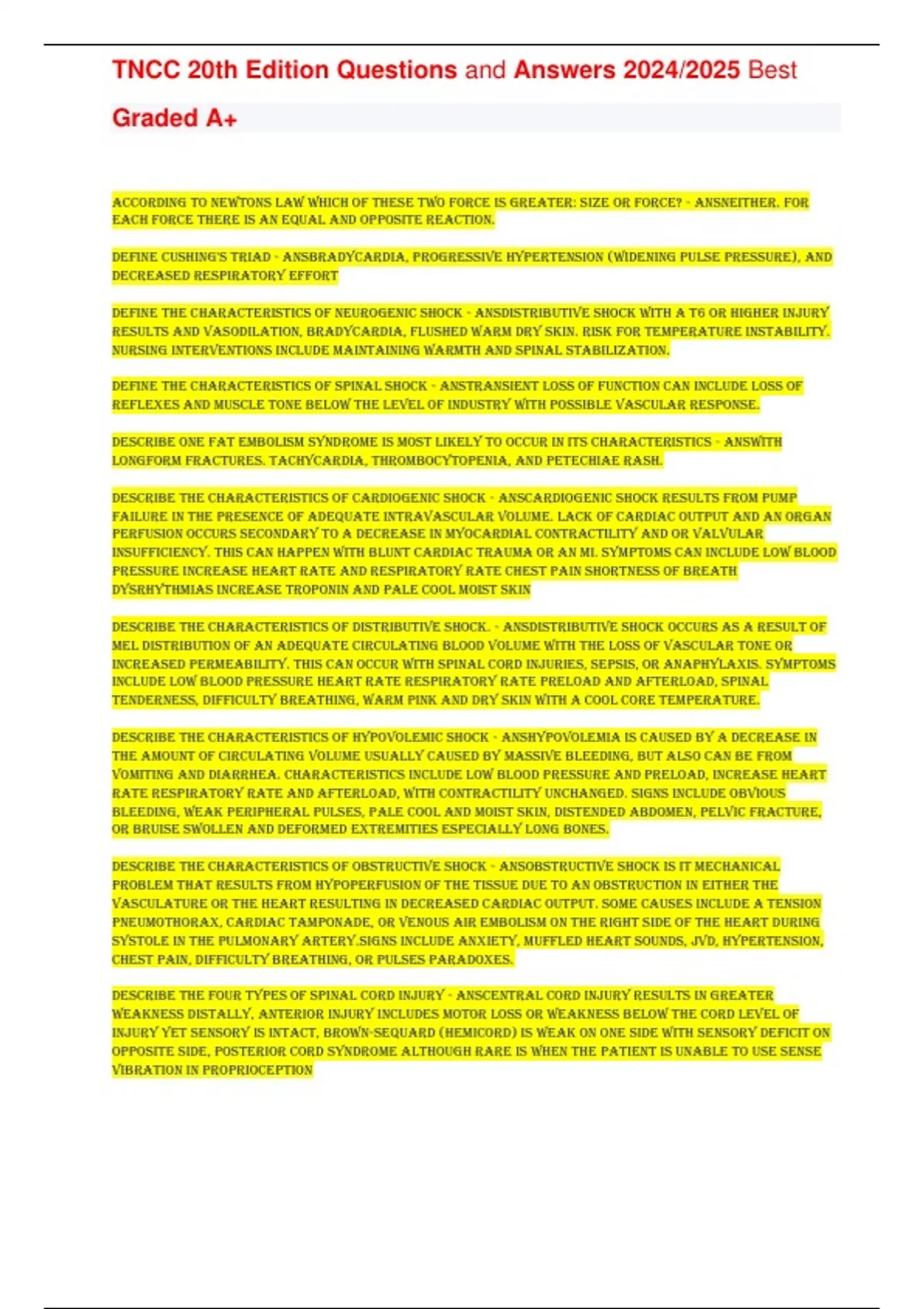 TNCC 20th Edition Questions and Answers 2024/2025 Best