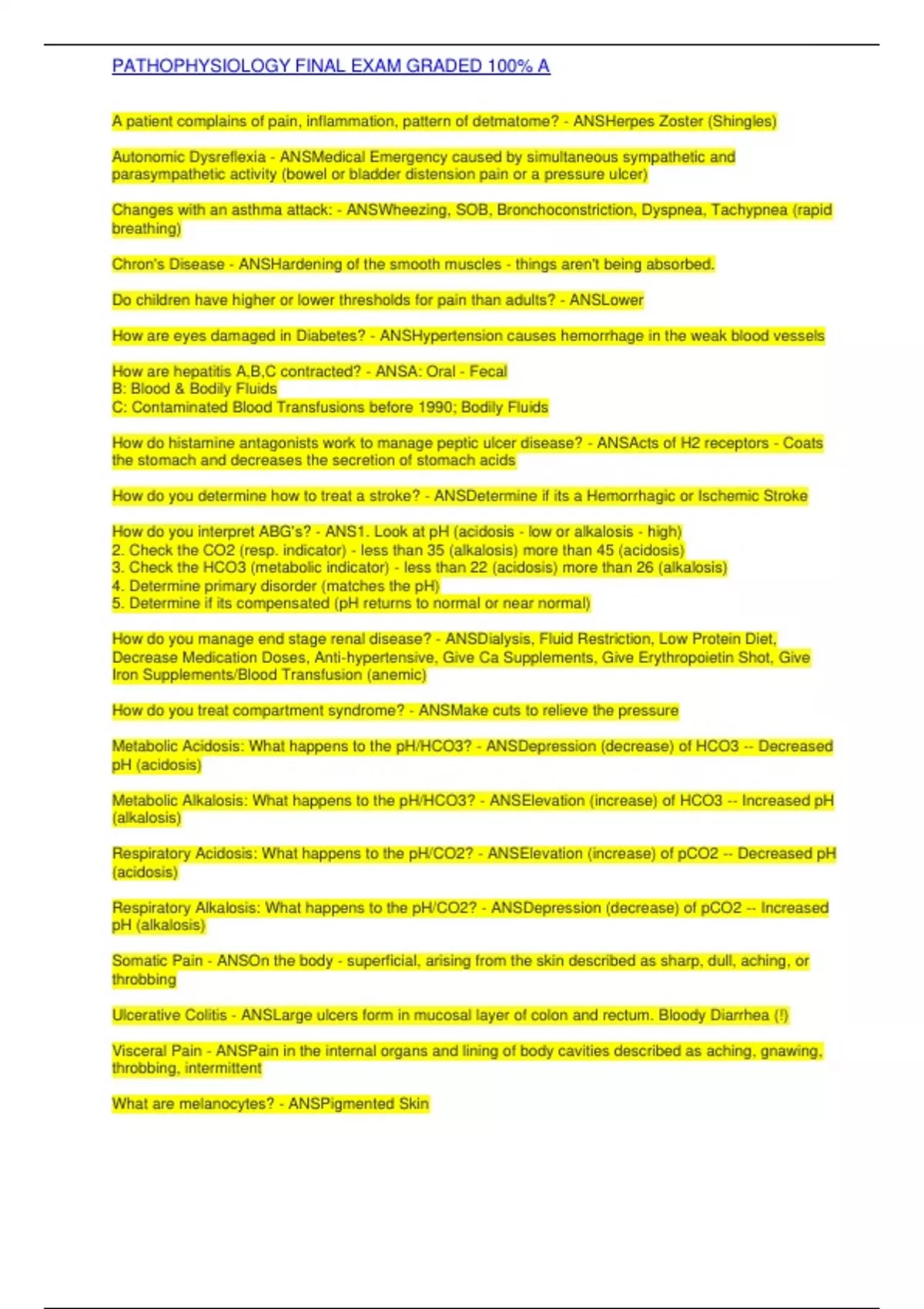 PATHOPHYSIOLOGY FINAL EXAM GRADED 100% A