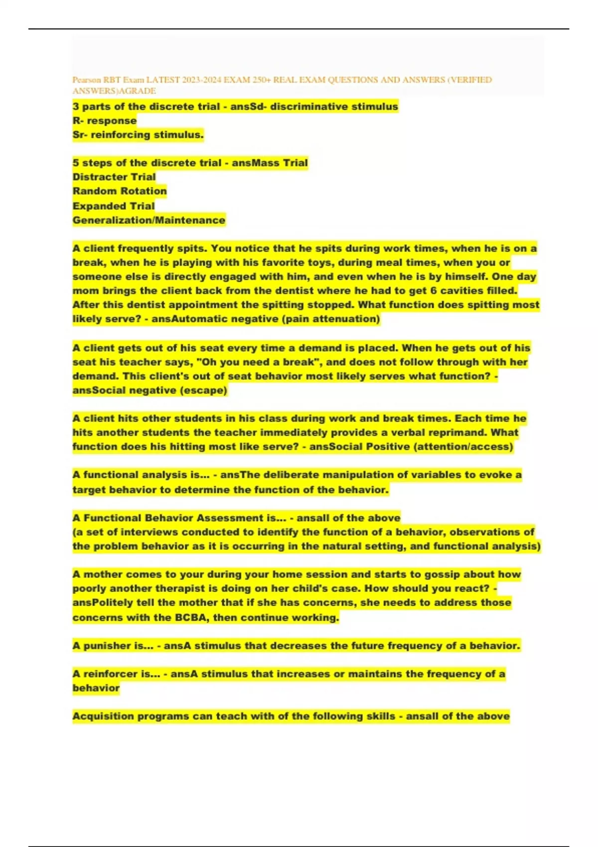 Pearson RBT Exam LATEST 2023-2024 EXAM 250+ REAL EXAM QUESTIONS AND ANSWERS (VERIFIED