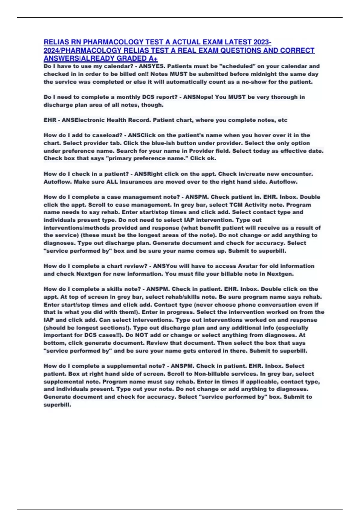 2024/PHARMACOLOGY RELIAS TEST A REAL EXAM QUESTIONS AND CORRECT