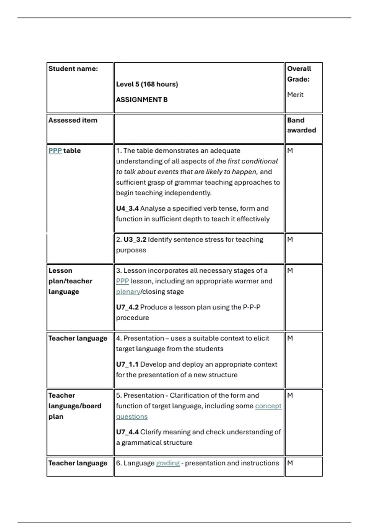 TEFL 168 hours Level 5 course Assignment B FEEDBACK - passed with MERIT degree