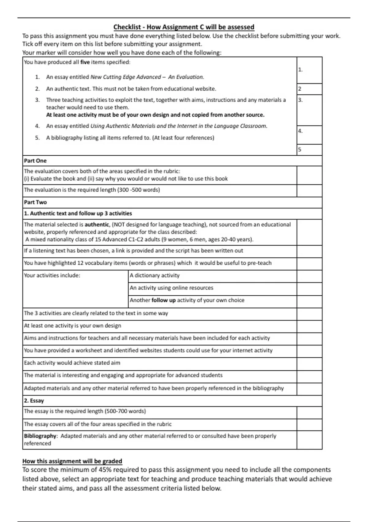 TEFL ACADEMY 168HOURS LEVEL 5 COURSE - Assignment C CHECKLIST Passed with MERIT