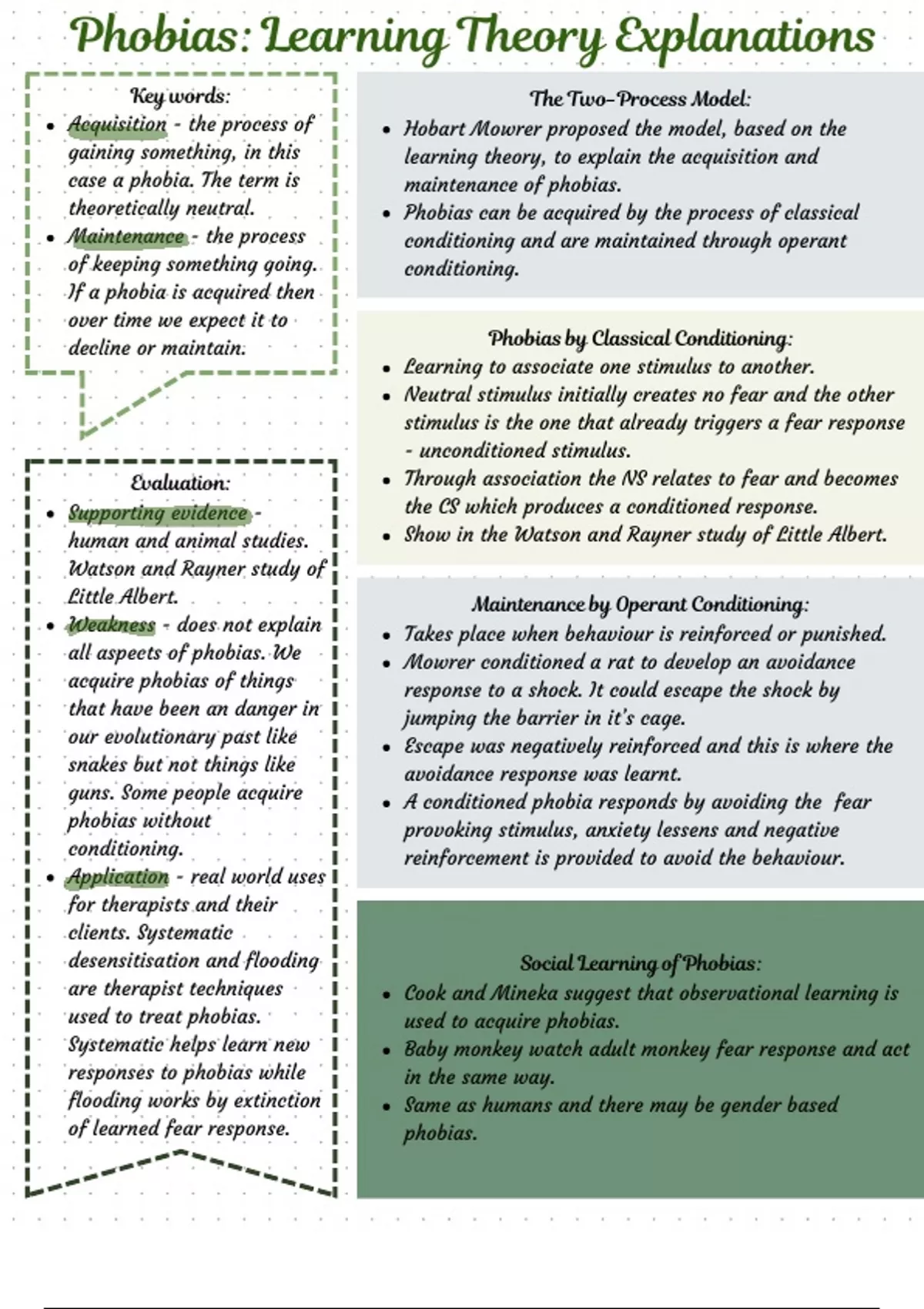 Phobias: Learning Theory Explanations