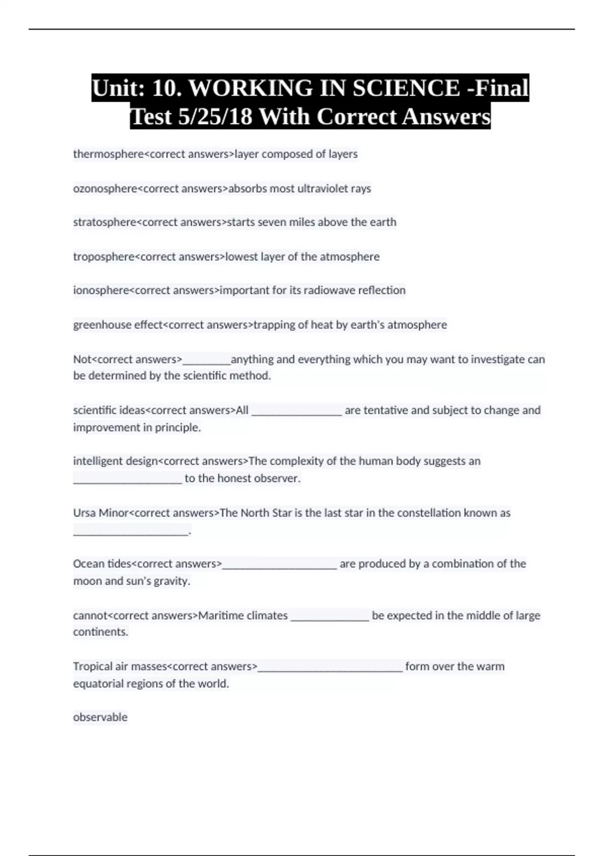 Unit: 10. WORKING IN SCIENCE -Final Test 5/25/18