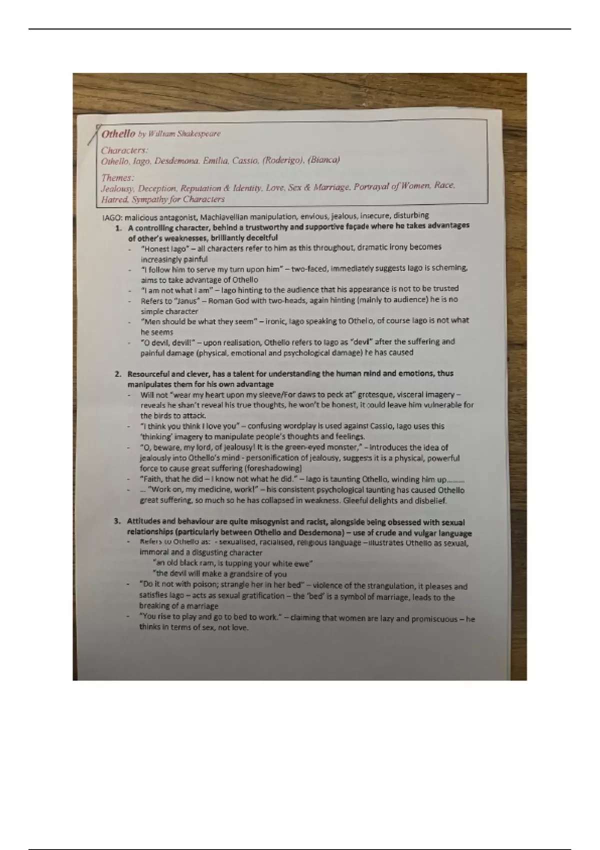 Eduqas English Literature (Othello, Silas, Inspector) Notes & Essay Plans