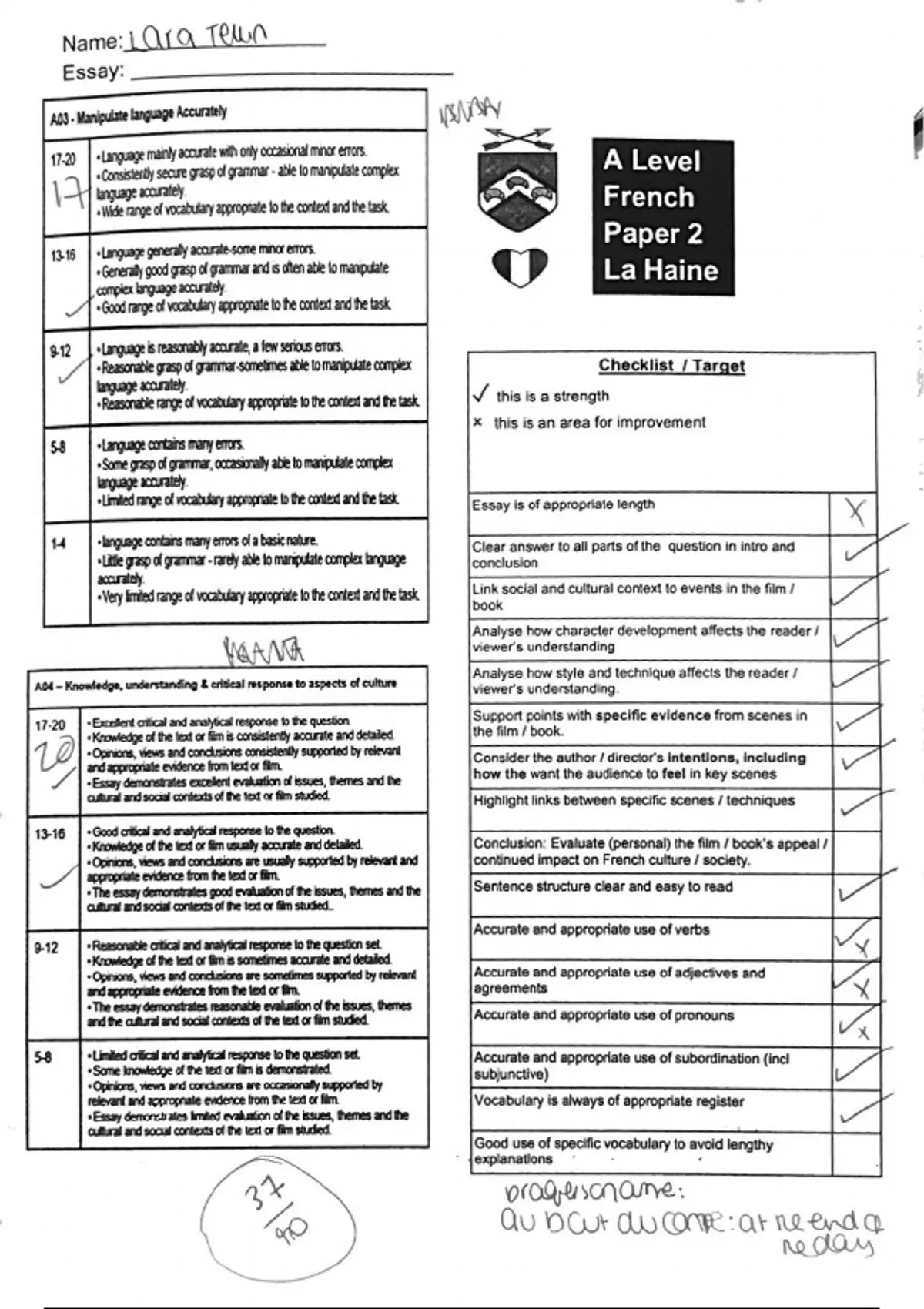 La Haine Exemplar A* essays