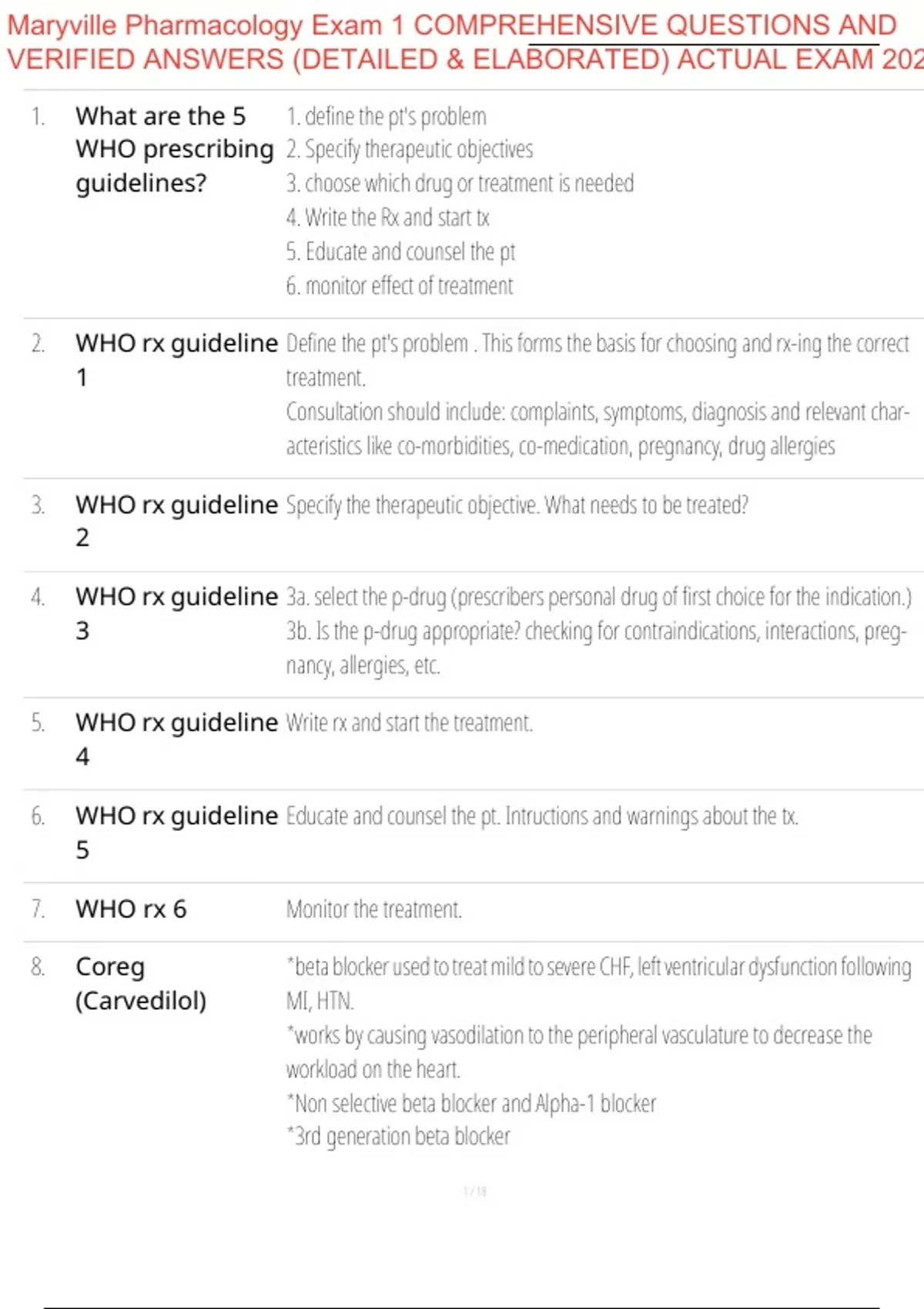 Maryville Pharmacology Exam 1 COMPREHENSIVE QUESTIONS AND