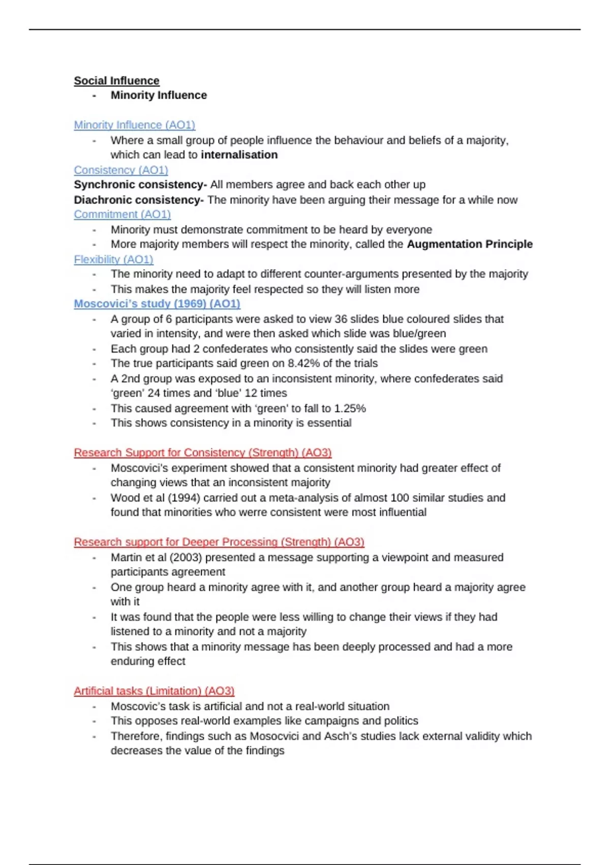 - Moscovici’s experiment showed that a consistent minority had greater effect of
