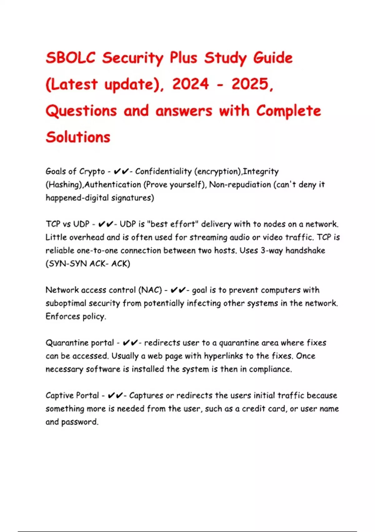 SBOLC Security Plus Study Guide with Complete Solutions, Rationalized [100% Correct] Grade A+ By Expert.