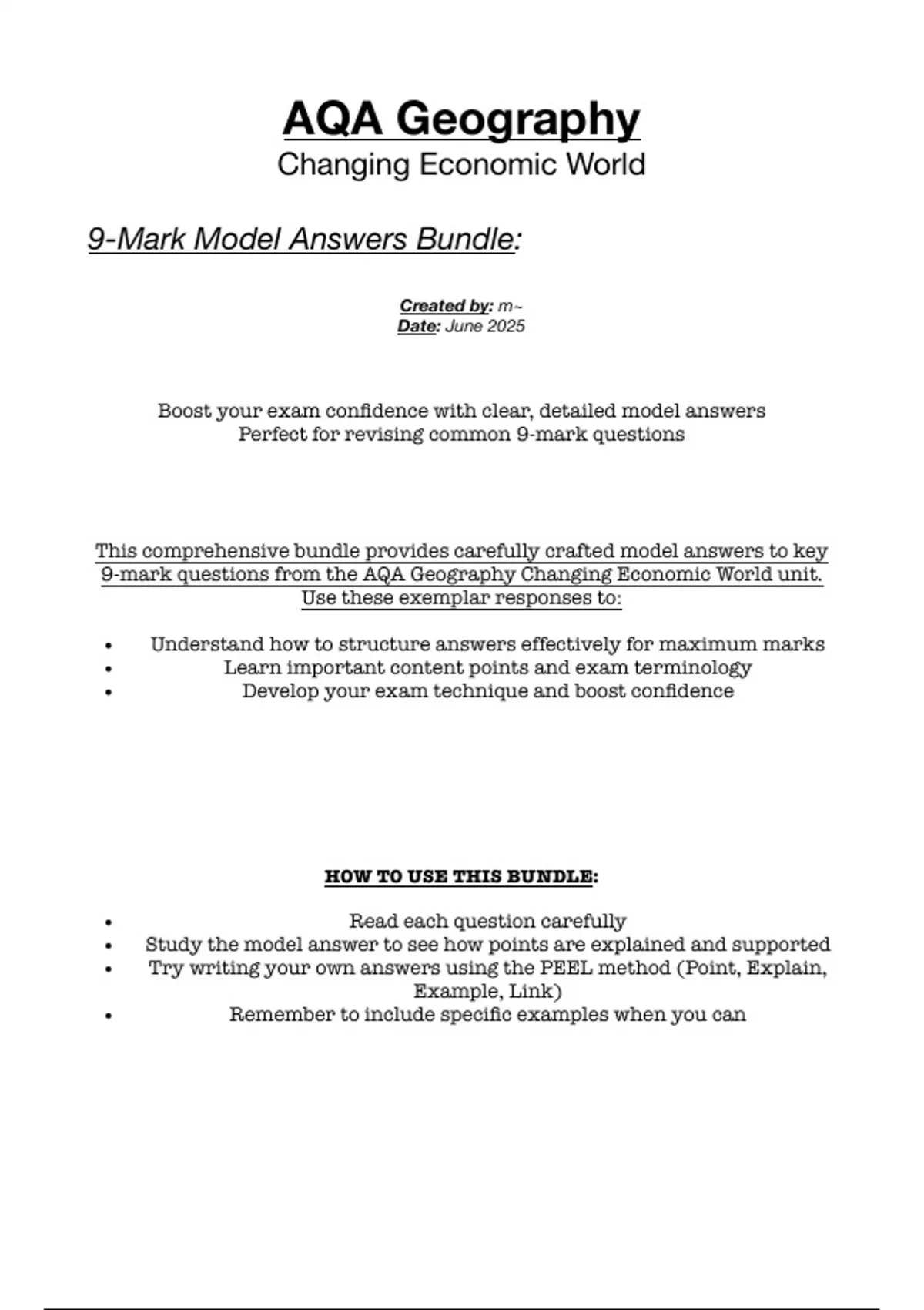 9-mark questions from the AQA Geography Changing Economic World unit.
