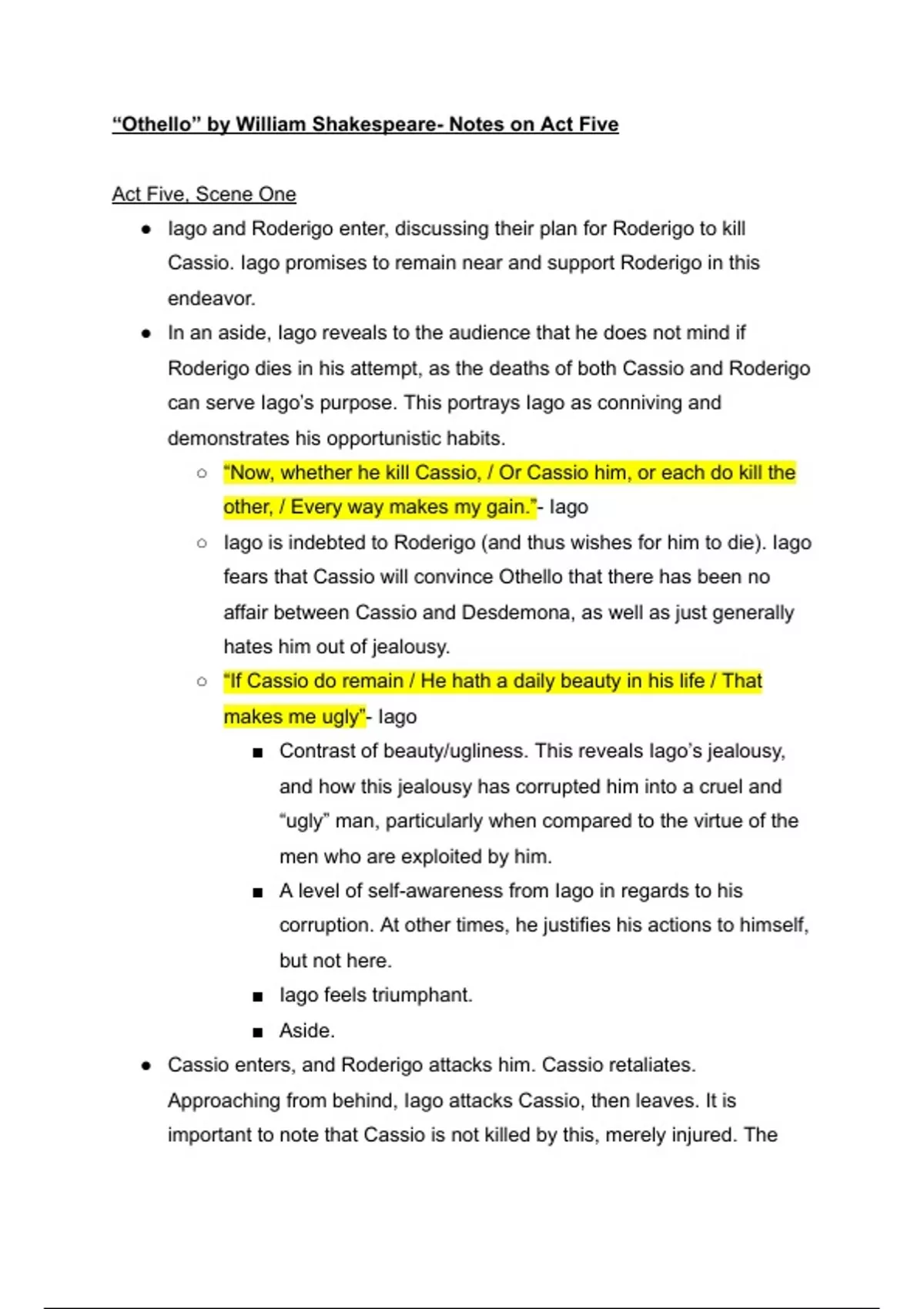 ○ Iago is indebted to Roderigo (and thus wishes for him to die). Iago