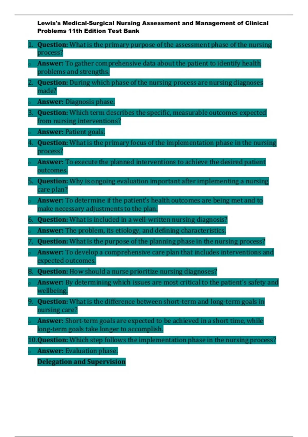 13.Question: Can a nurse delegate the task of performing a head-to-toe assessment?