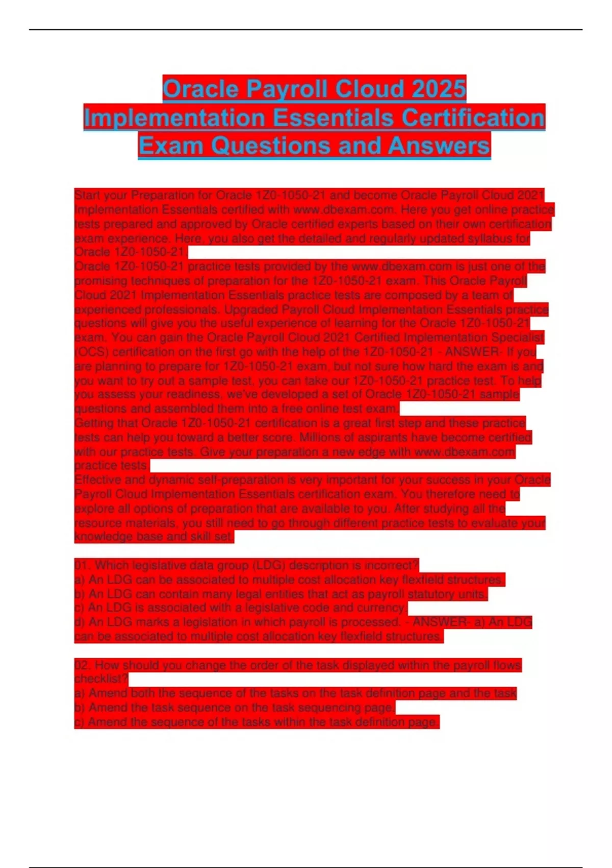 Oracle Payroll Cloud 2025 Implementation Essentials Certification Exam Questions and Answers.pdf
