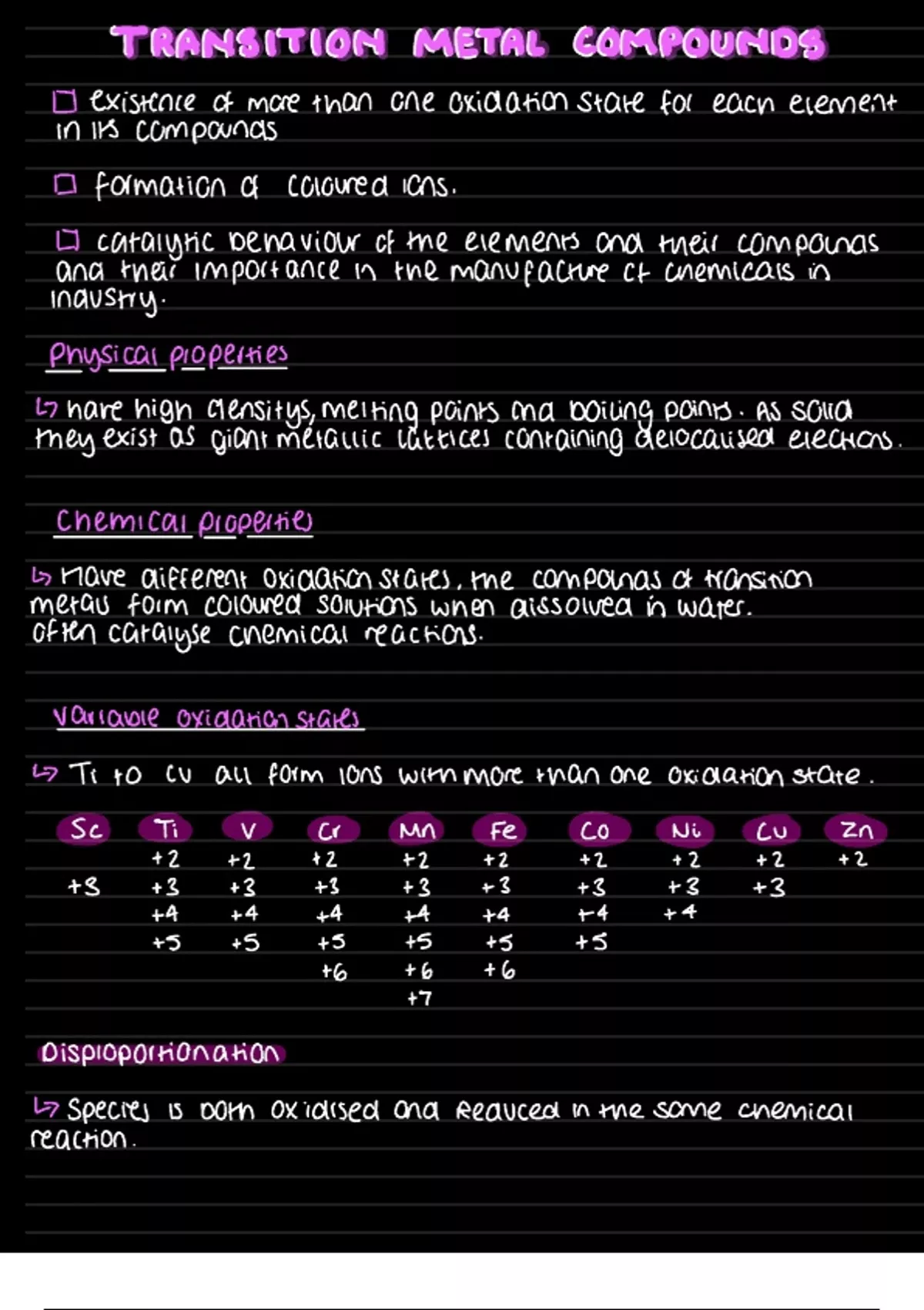 OCR A Chemistry – Transition Metals | Summary Notes