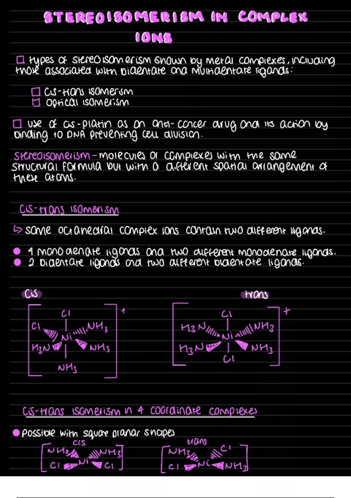 OCR A Chemistry – Stereoisomerism in complex ions | Summary Notes