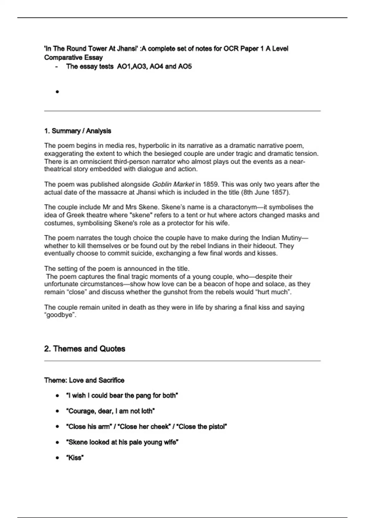 The poem narrates the tough choice the couple have to make during the Indian Mutiny—