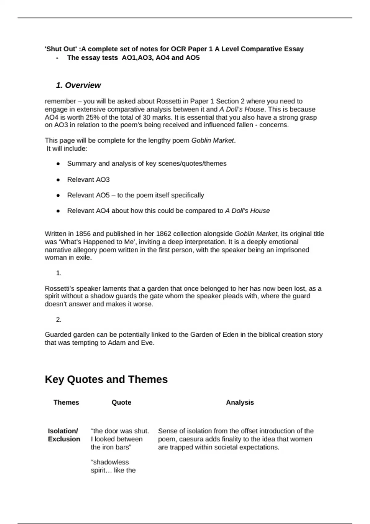● Relevant AO4 about how this could be compared to A Doll’s House