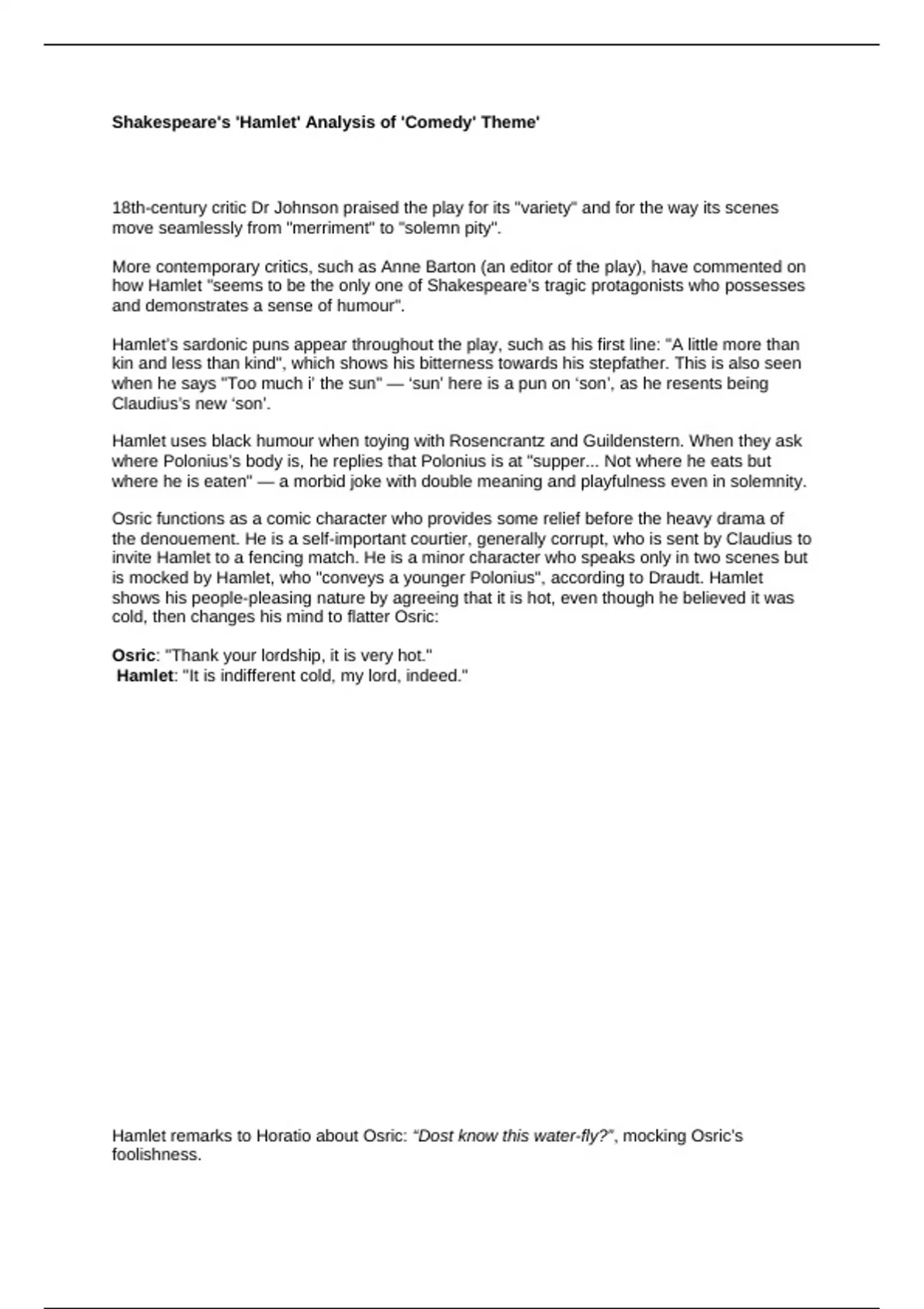 Summary - Shakespeare's Hamlet' Analysis of 'Comedy' Theme OCR P1