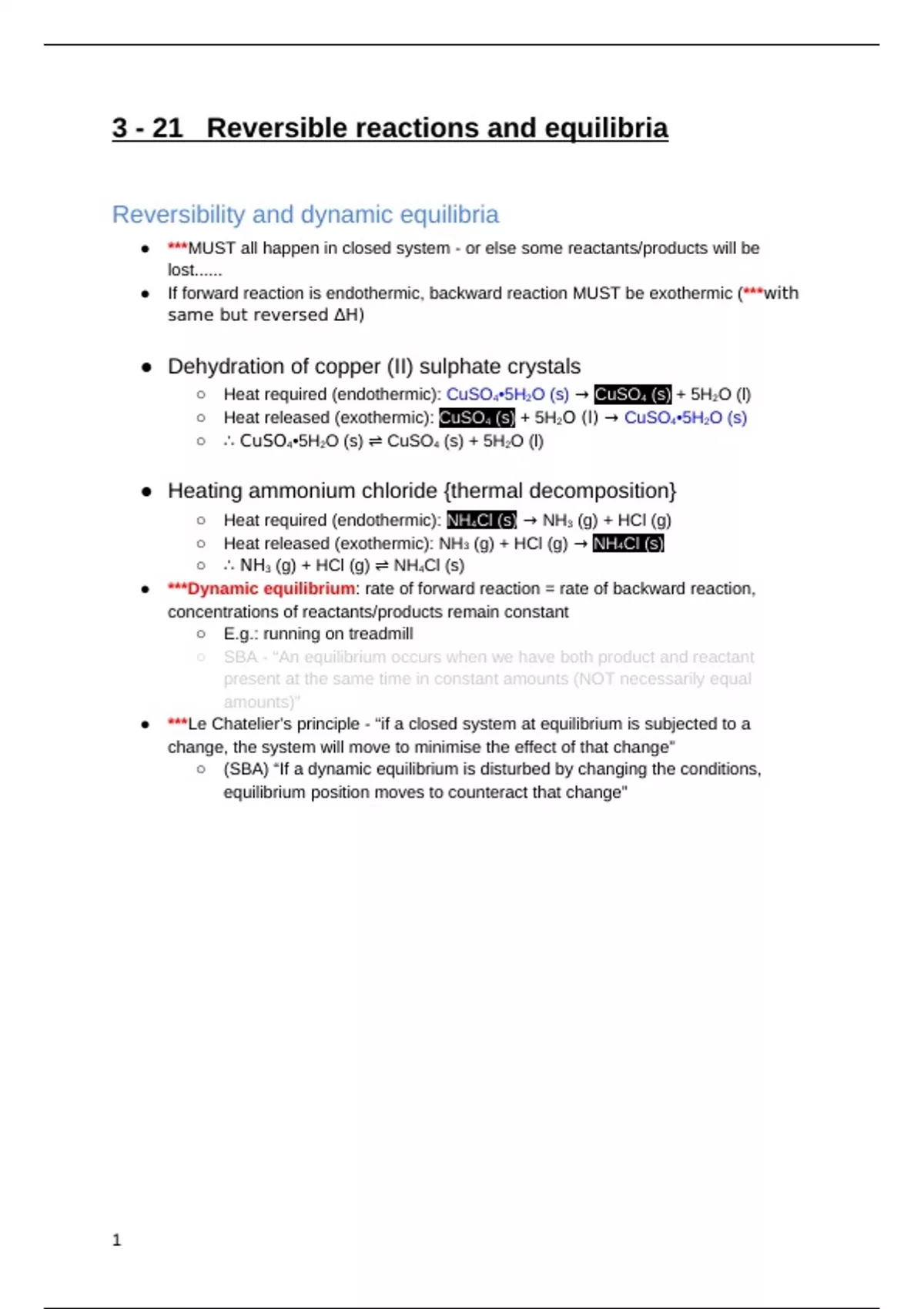 ● ***Dynamic equilibrium: rate of forward reaction = rate of backward reaction,