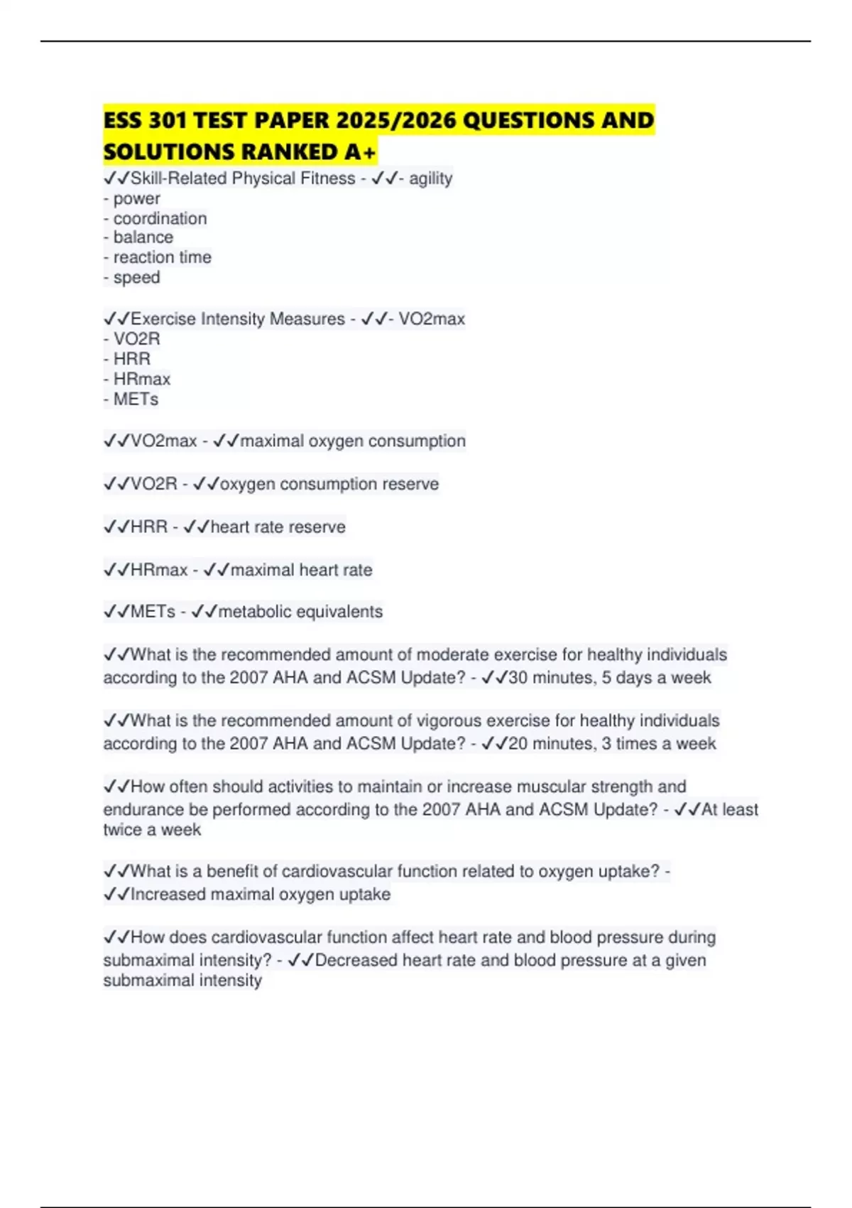 ✔✔How does exercise affect resting pulse rate? - ✔✔Decreases resting pulse rate