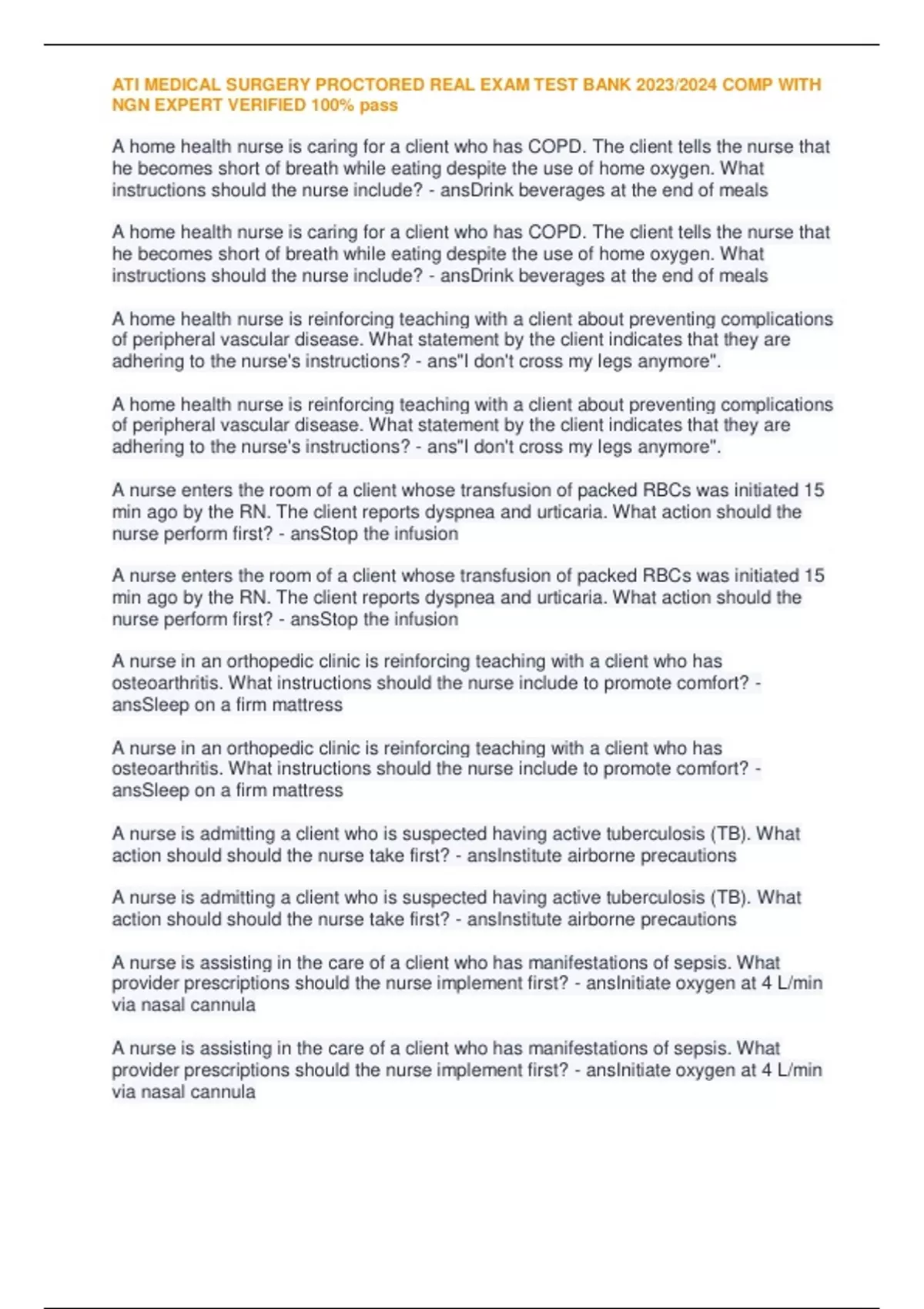 , ATI MEDICAL SURGERY PROCTORED REAL EXAM TEST BANK 2023/2024 COMP WITH
