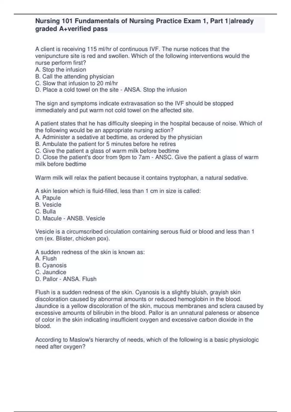 Nursing 101 Fundamentals of Nursing Practice Exam 1, Part 1|already