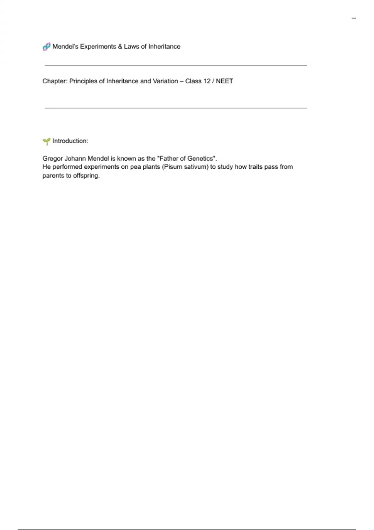 🧬 Mendel’s Experiments & Laws of Inheritance