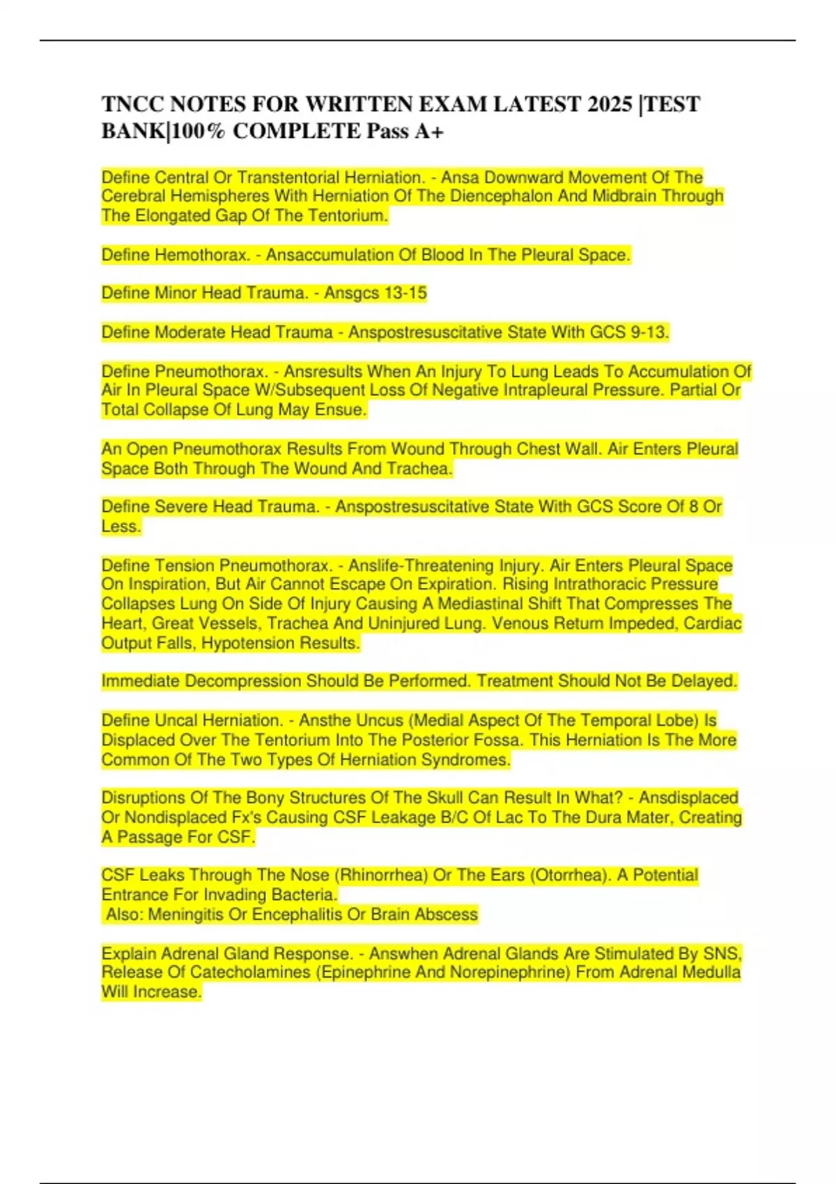 ,TNCC NOTES FOR WRITTEN EXAM LATEST 2025 |TEST