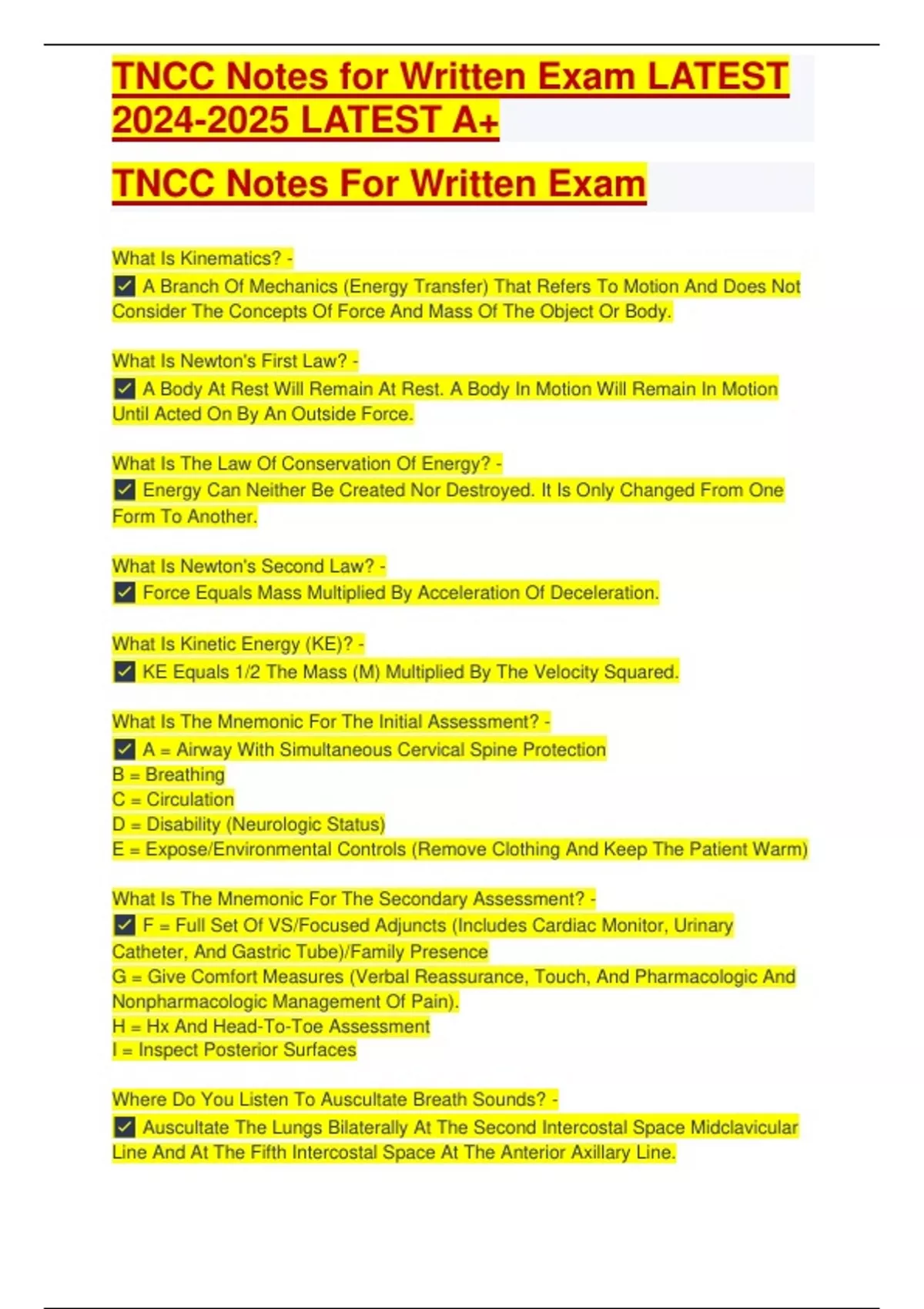 TNCC Notes for Written Exam LATEST