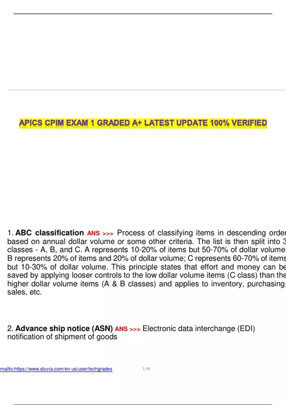 APICS CPIM EXAM 1 GRADED A+ LATEST UPDATE 100% VERIFIED APICS CPIM exam CPIM exam prep CPIM practice test APICS CPIM certification CPIM exam guide CPIM test questions CPIM study material CPIM exam tips Certified in Production and Inventory Management APICS certification CPIM exam review CPIM exam resources APICS CPIM prep course CPIM practice exam CPIM certification test APICS CPIM study guide CPIM exam preparation CPIM certification cost CPIM exam online APICS certification cost CPIM certification training CPIM exam dates APICS CPIM modules CPIM exam format CPIM exam updates CPIM exam strategy CPIM exam verified CPIM passing score Latest CPIM exam CPIM certification exam A+