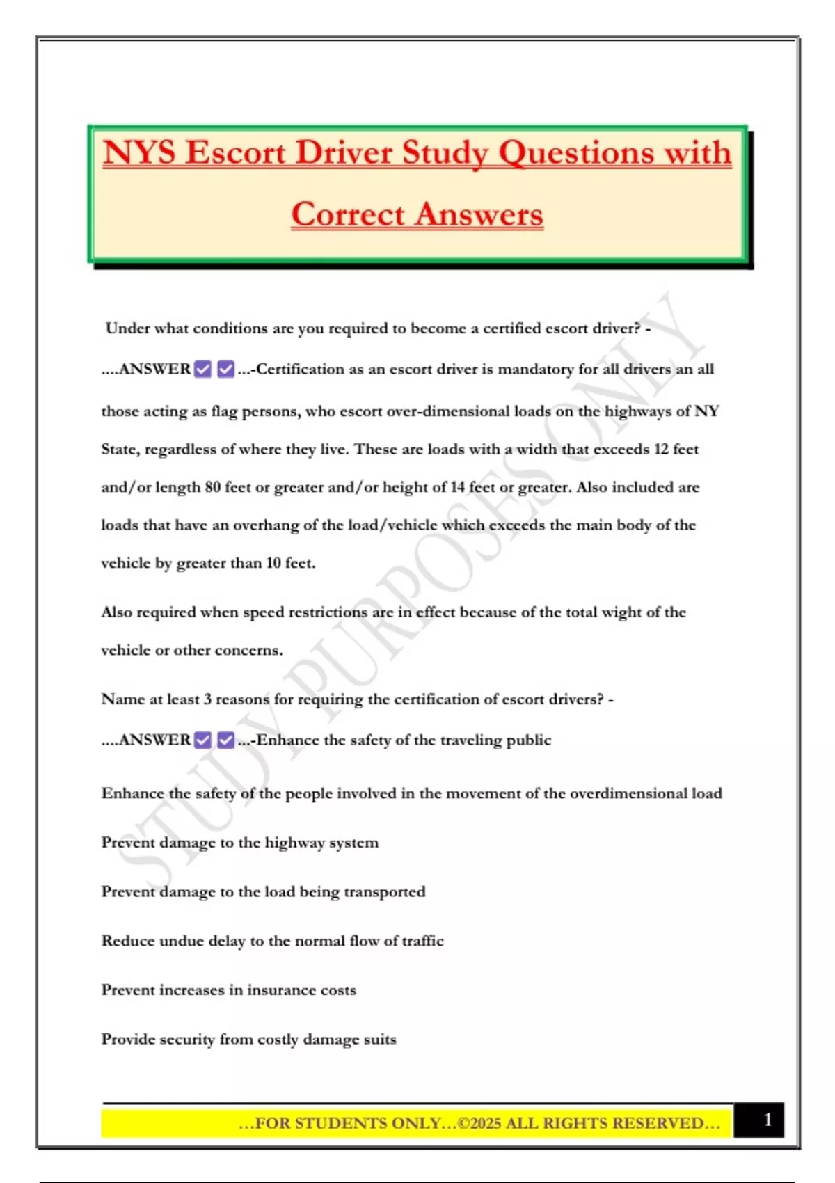 NYS Escort Driver Study Questions with Correct Answers