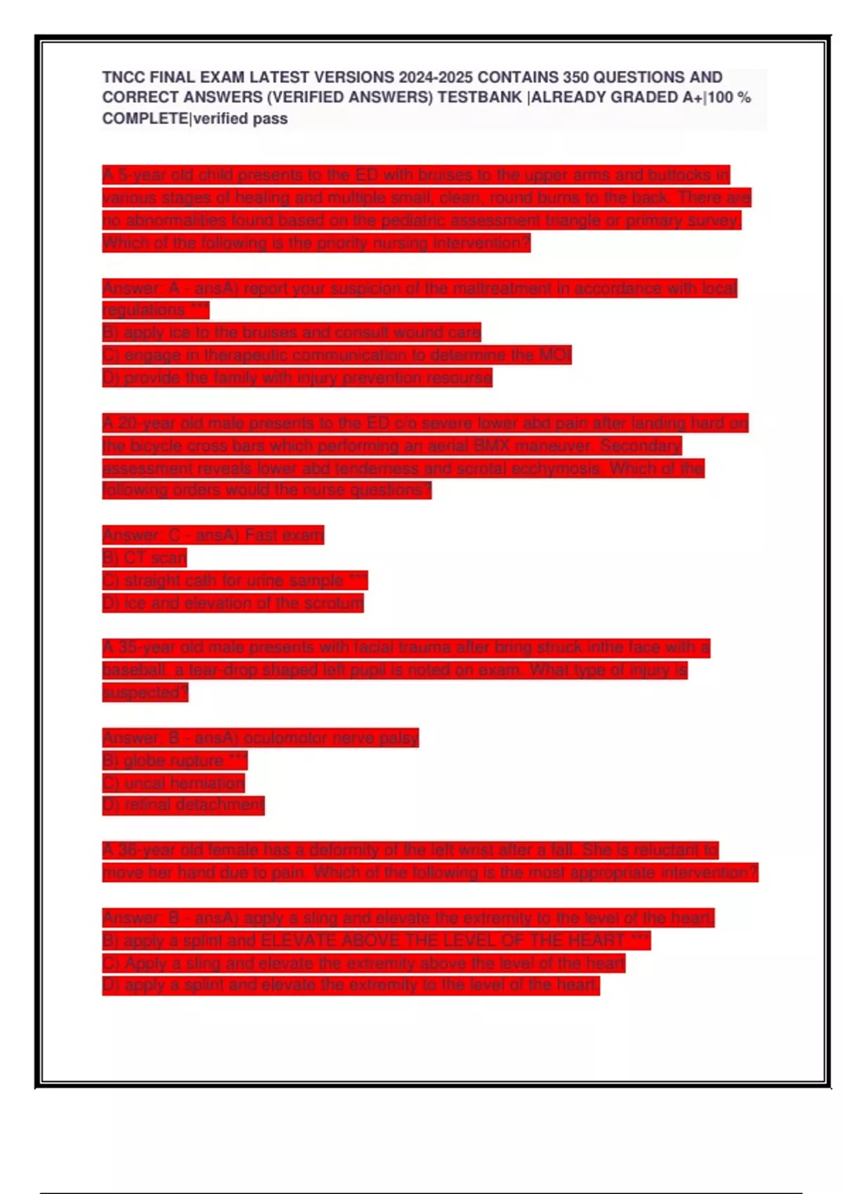 , TNCC FINAL EXAM LATEST VERSIONS 2024-2025 CONTAINS 350 QUESTIONS AND