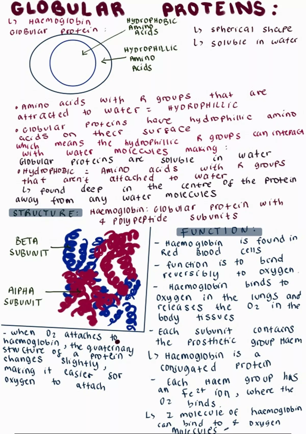 Has detailed and colourful notes about globular and fibrous proteins with structure and functions. Includes drawings images and examples. Includes notes about collagen, keratin, and cellulose. Notes about human body proteins