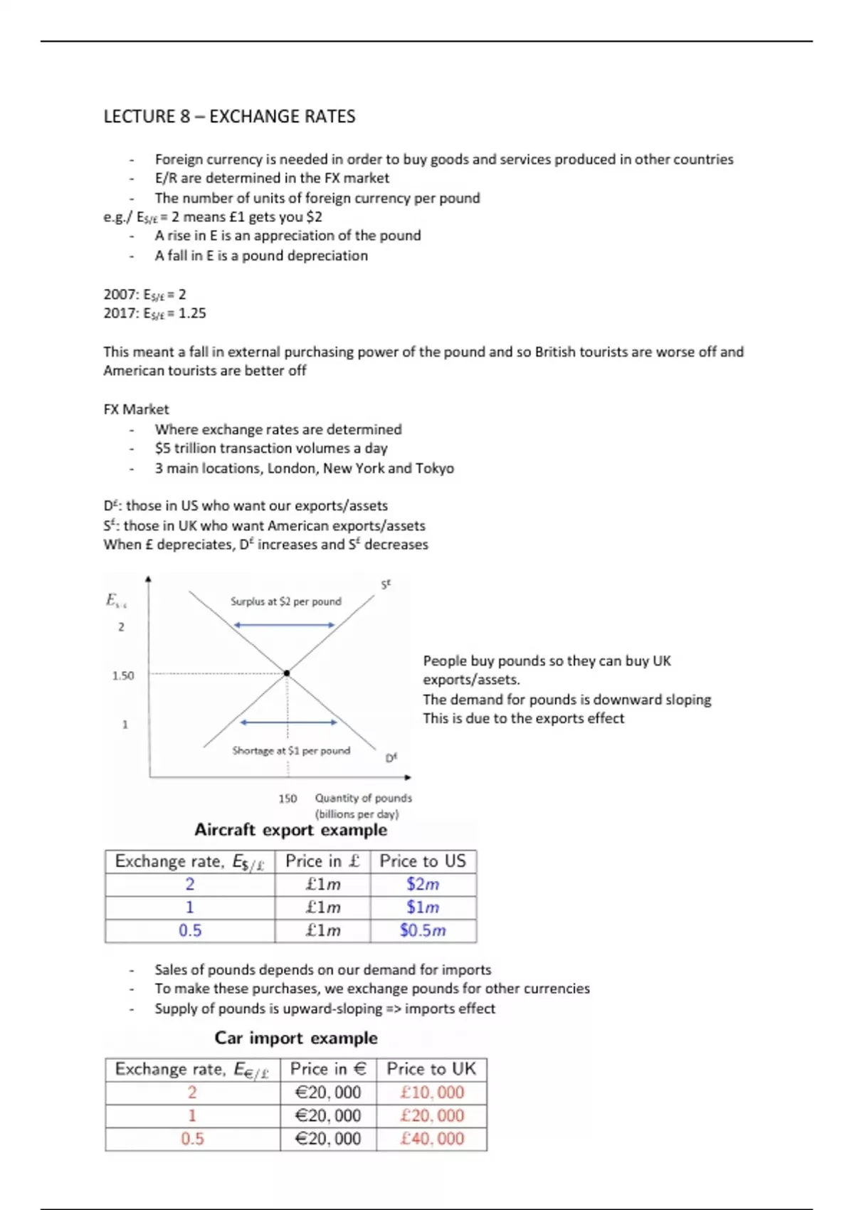 - Supply of pounds is upward-sloping => imports effect