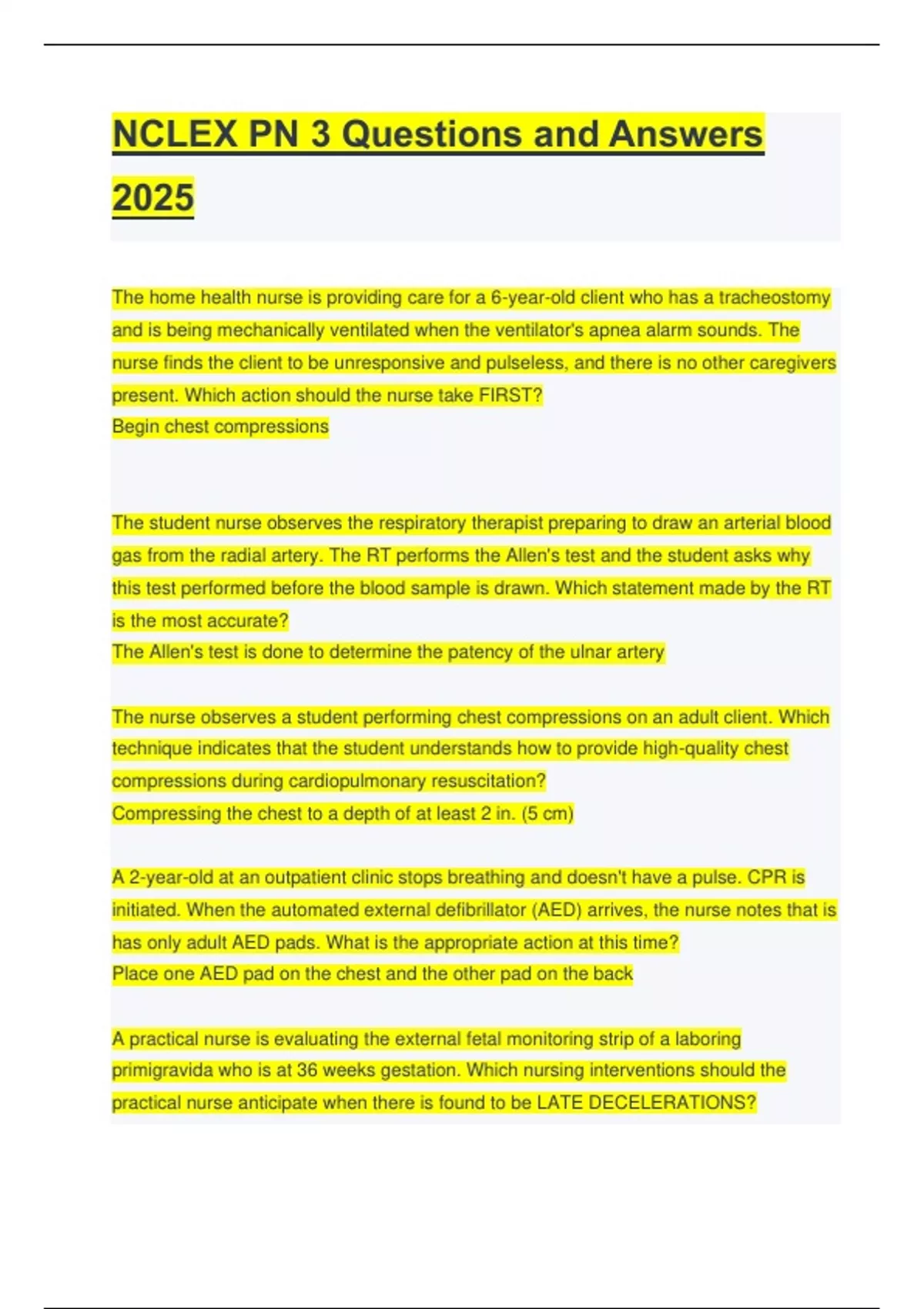 NCLEX PN 3 Questions and Answers