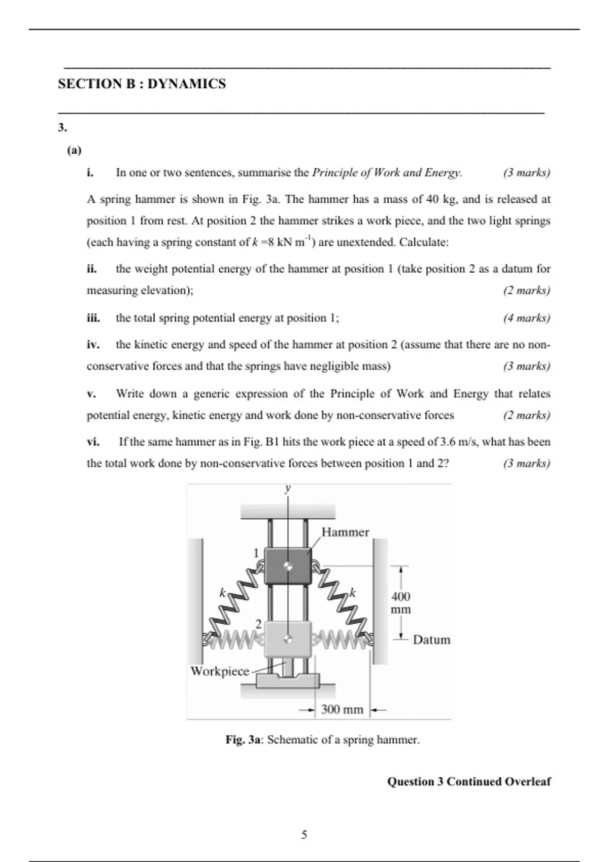 i. In one or two sentences, summarise the Principle of Work and Energy. (3 marks)