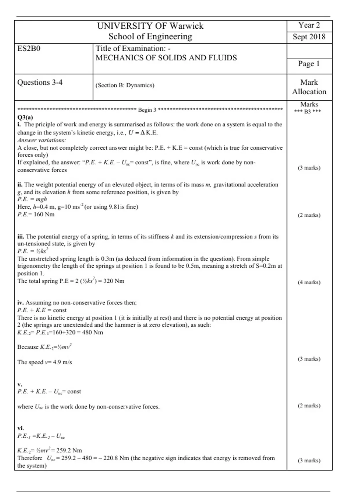P.E.= 160 Nm (2 marks)