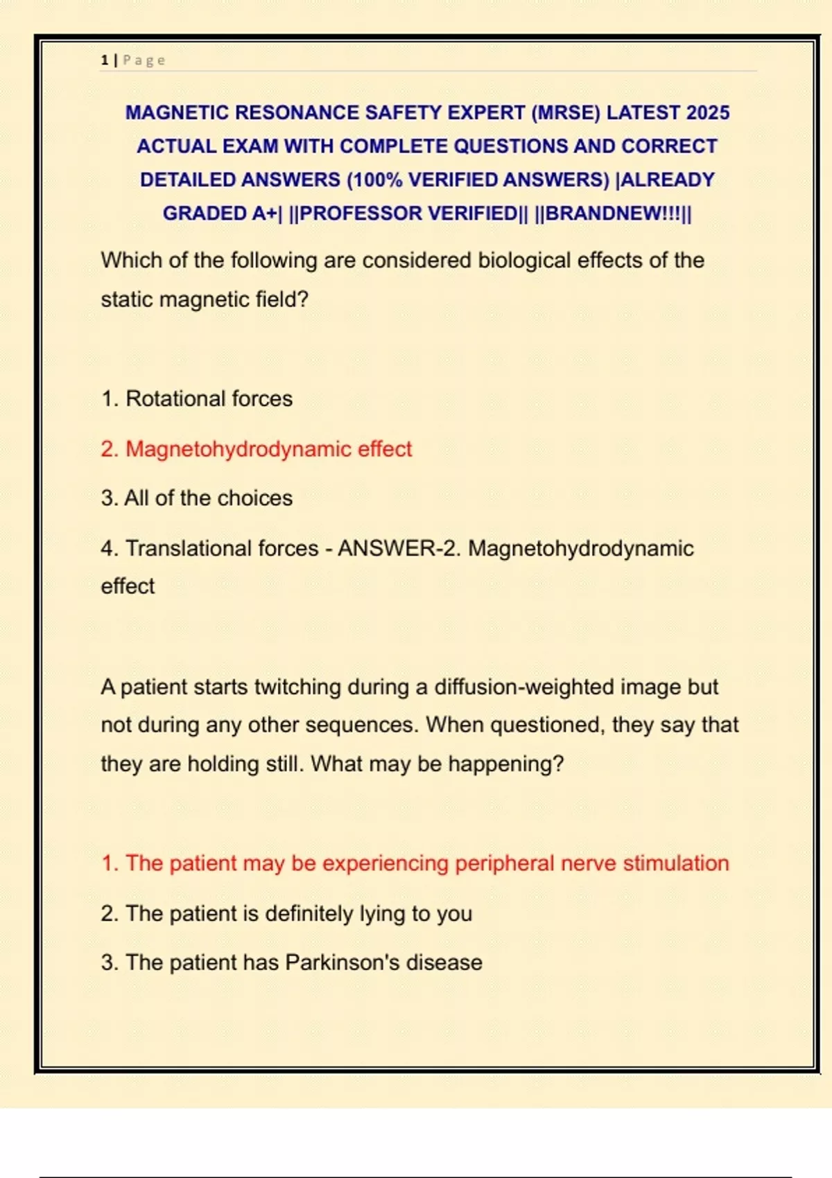 MAGNETIC RESONANCE SAFETY EXPERT (MRSE) LATEST 2025