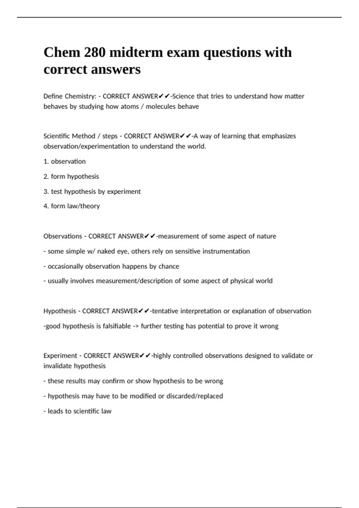 Chem 280 midterm exam questions with correct answers
