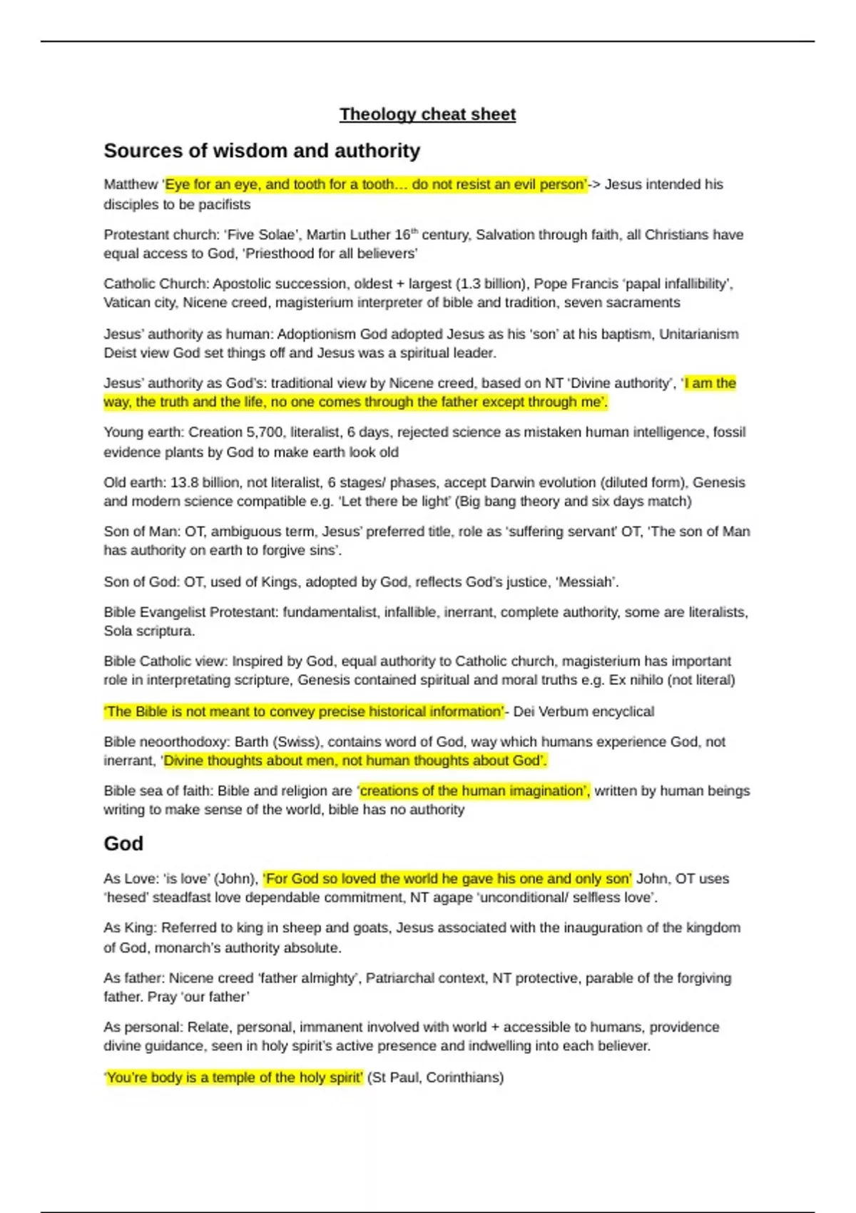 Condensed and concise A* Theology notes